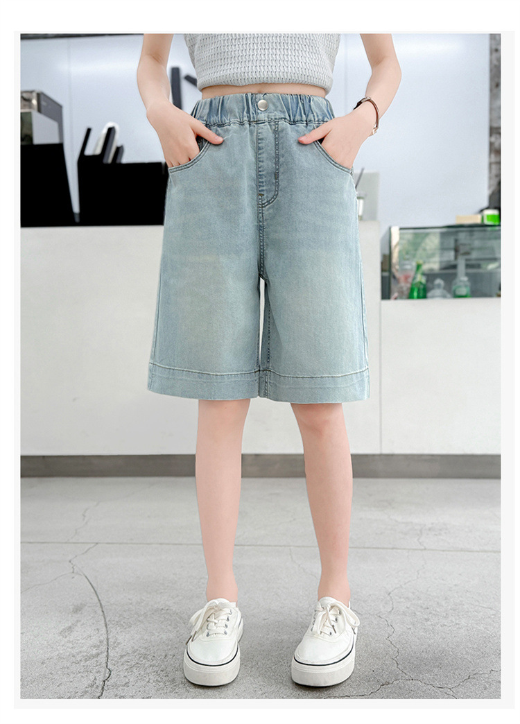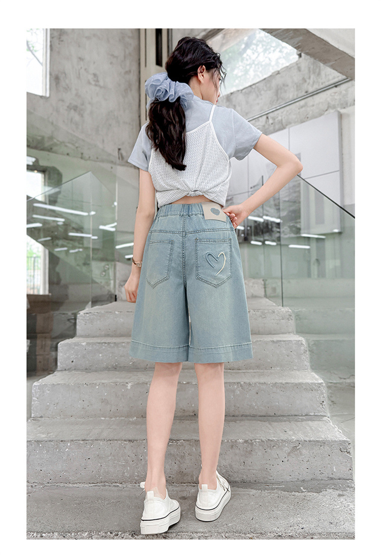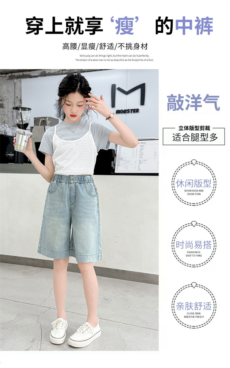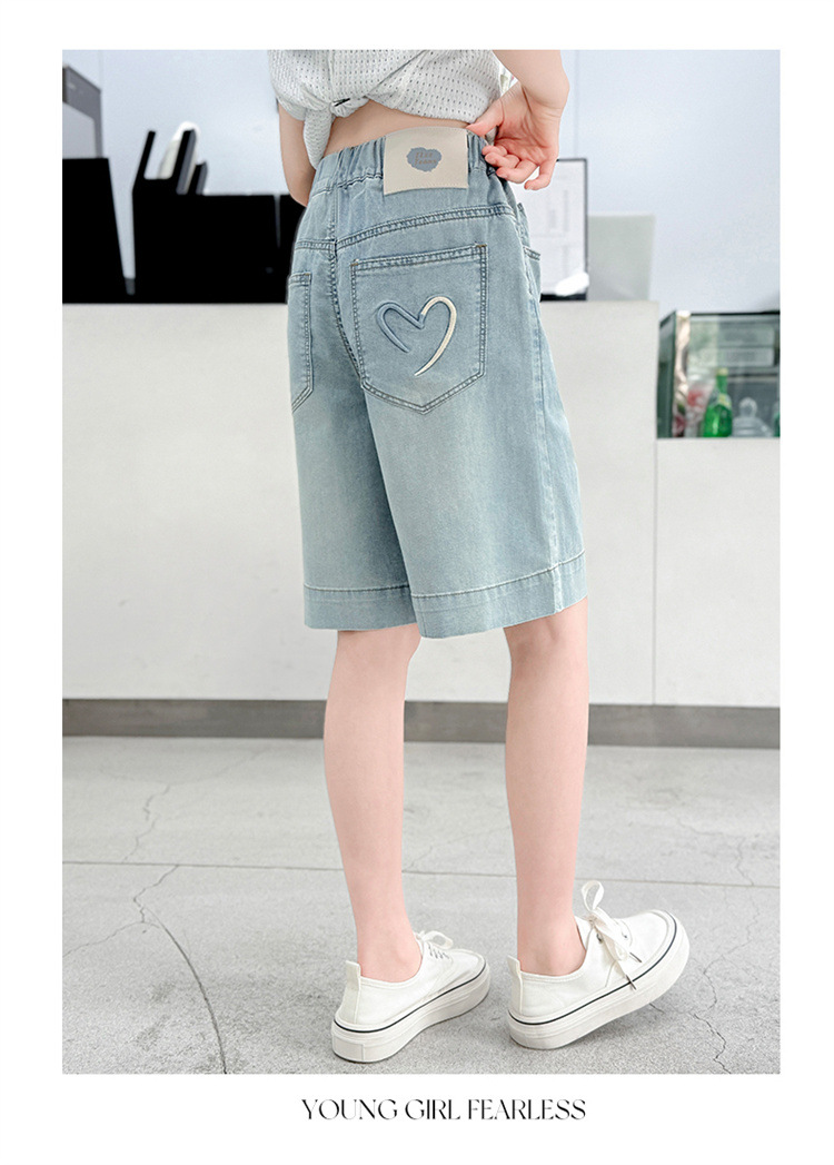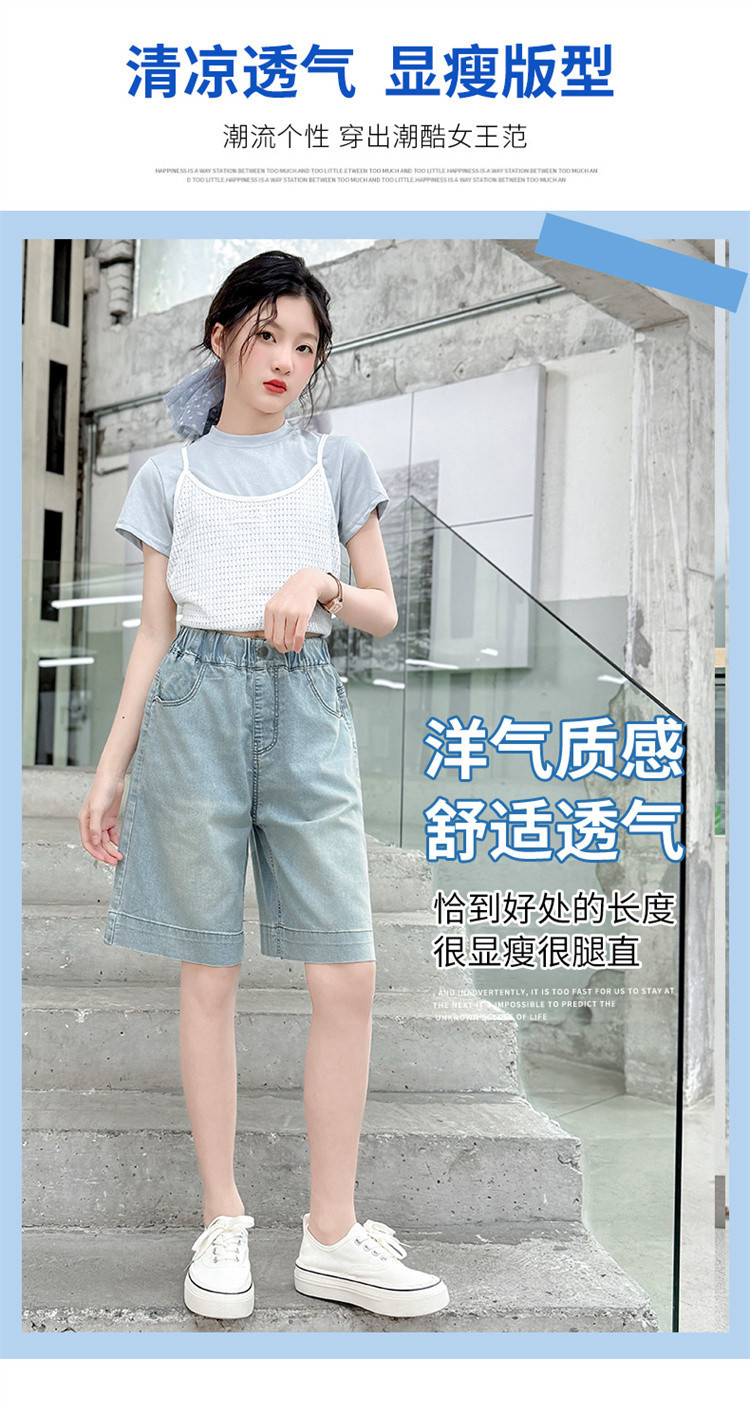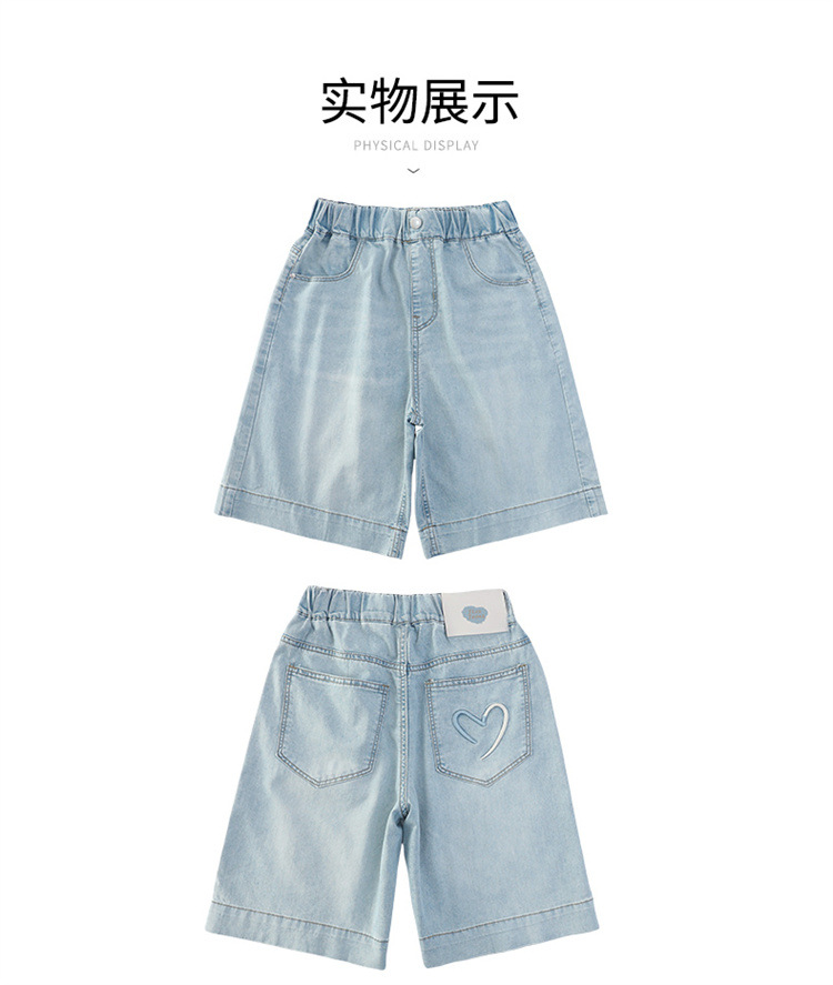 소녀 데님 반바지 2025 새로운 스타일 큰 어린이 얇은 유행 바지 여름 외부 착용 어린이 바지 느슨한스토어 가기
