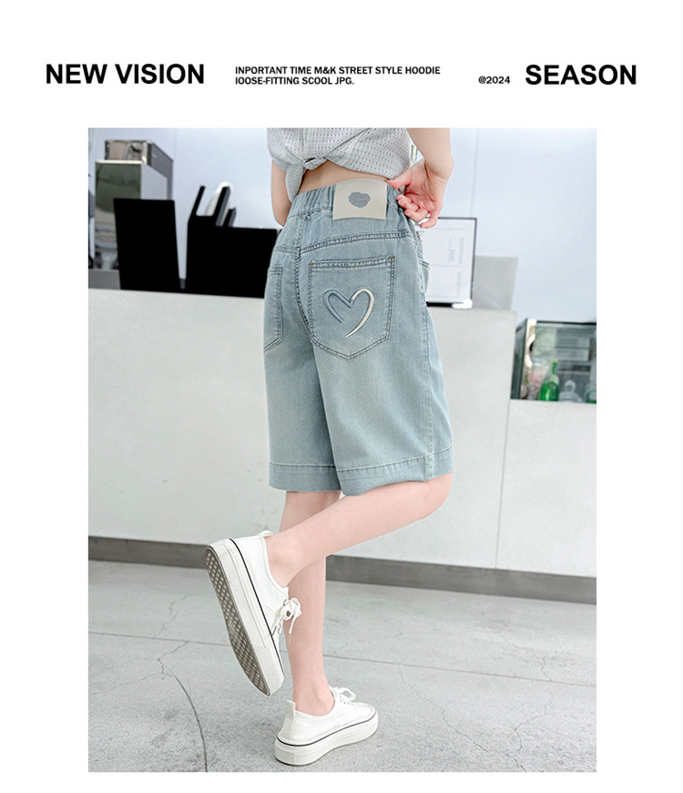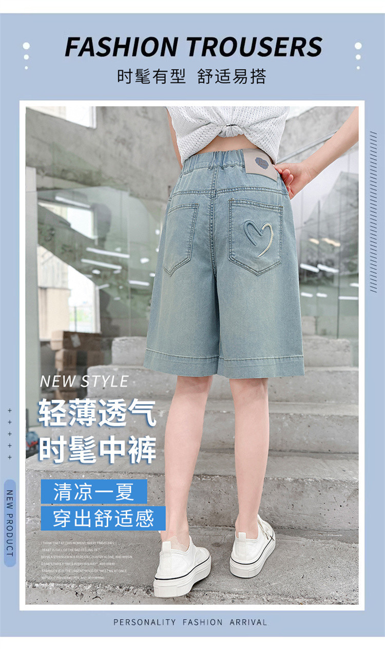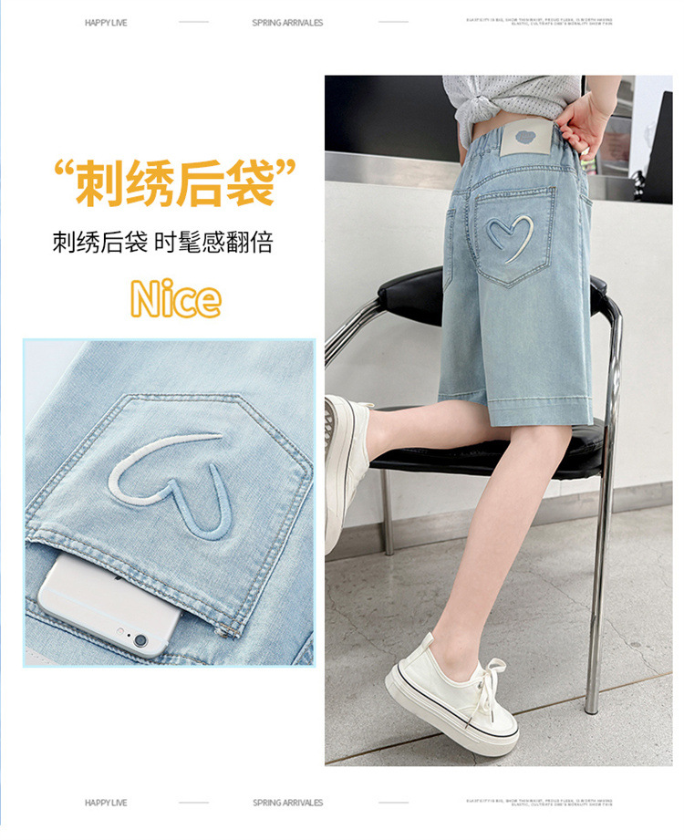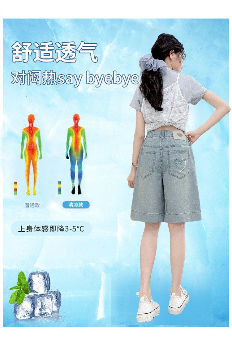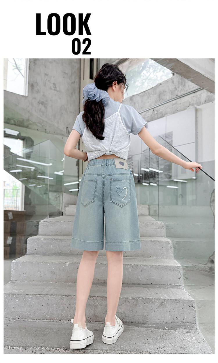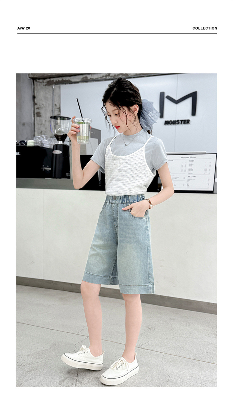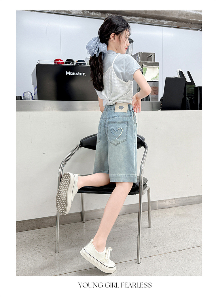 소녀 데님 반바지 2025 새로운 스타일 큰 어린이 얇은 유행 바지 여름 외부 착용 어린이 바지 느슨한스토어 가기