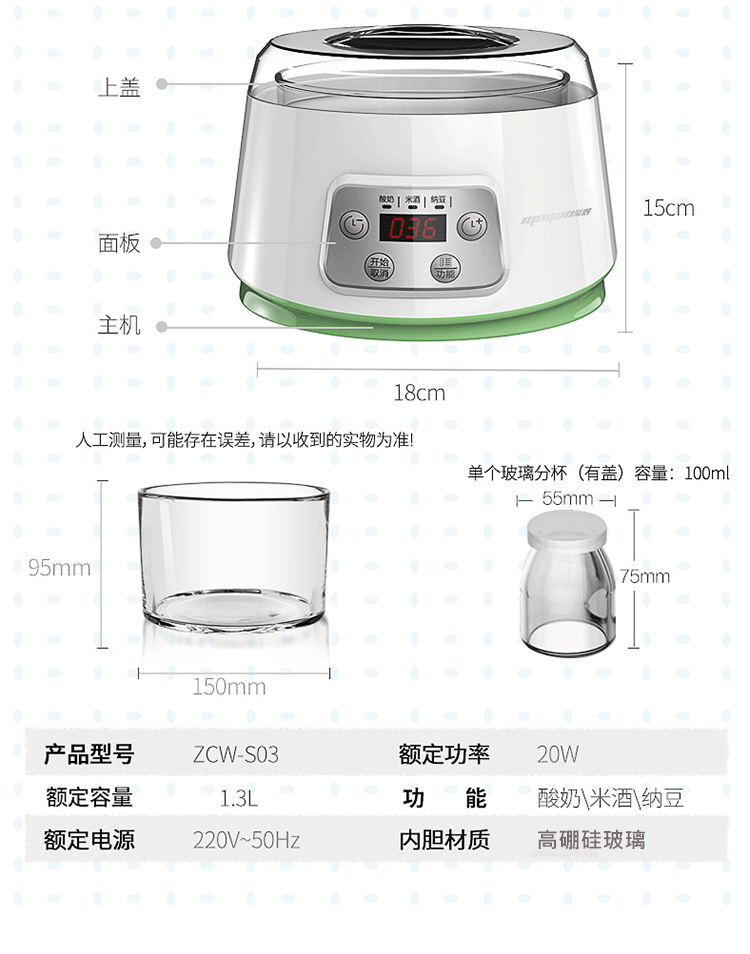 가정용 요구르트 기계 다기능 몬데 ZCW-S03 유리 컵 소형 완전 자동 대용량 낫토 주류스토어 가기