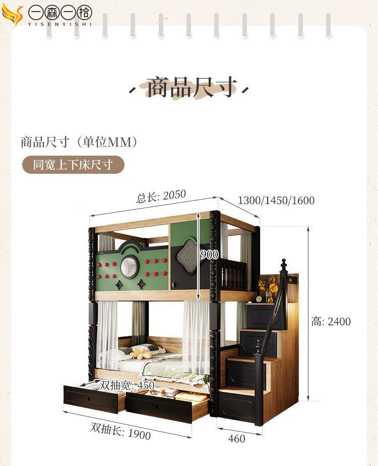 • 높고 낮은 침대 + 더블 서랍 + 사다리 캐비닛 + 슬라이드