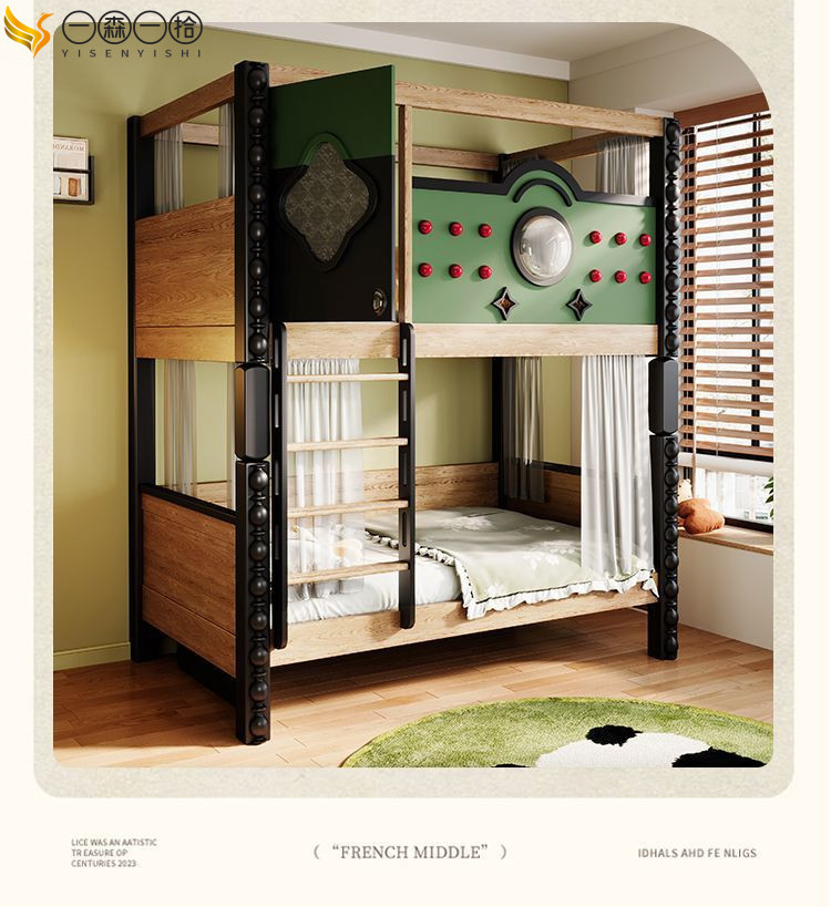 프렌치 미드센츄리 스타일 이층침대 원목 원목 어린이 이층침대 이층침대 같은 폭의 슬라이드 침대