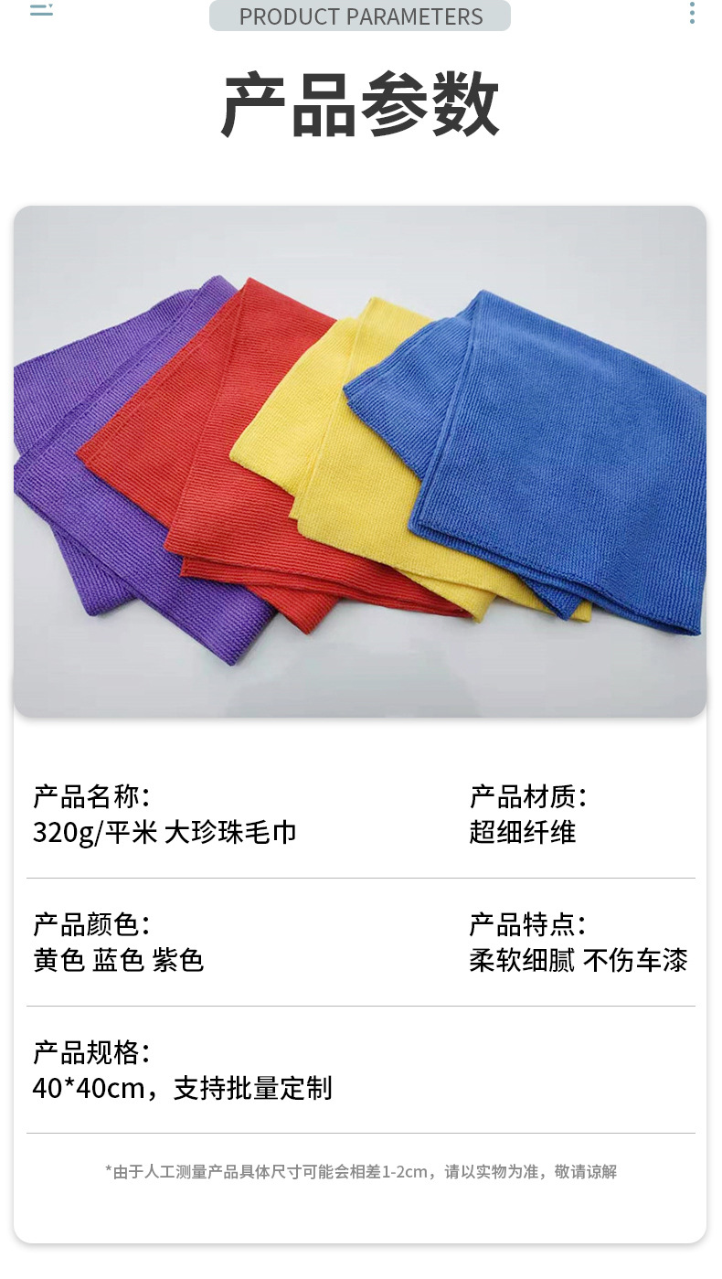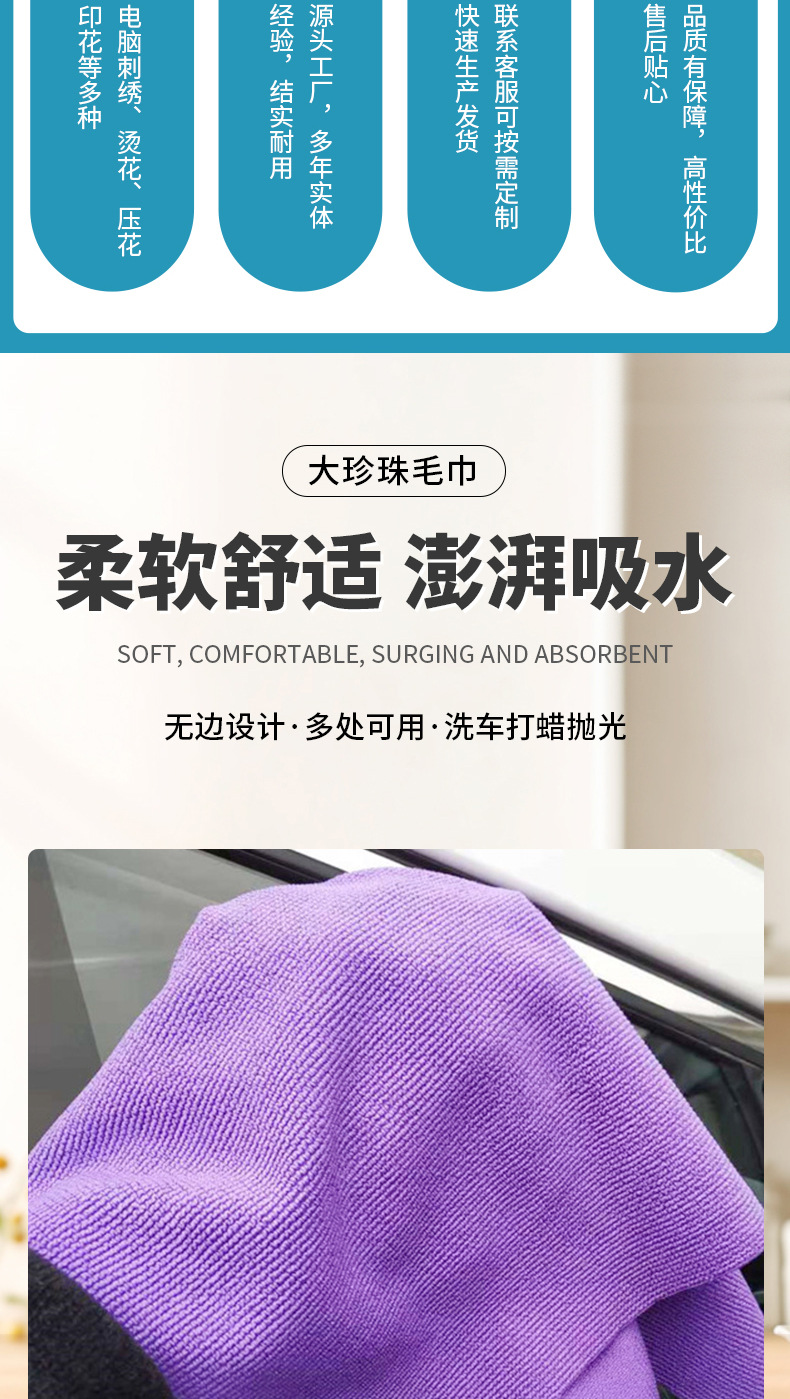 320g 40*40 크리스탈 왁스가 코팅된 무한대 대형 진주 수건 세차용 미세 섬유 걸레 강력한 흡수성 자동차 수건스토어 가기