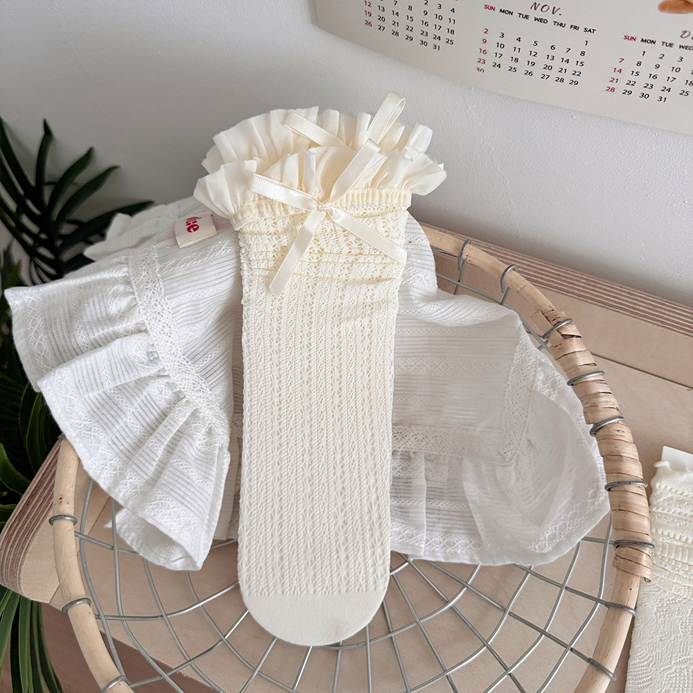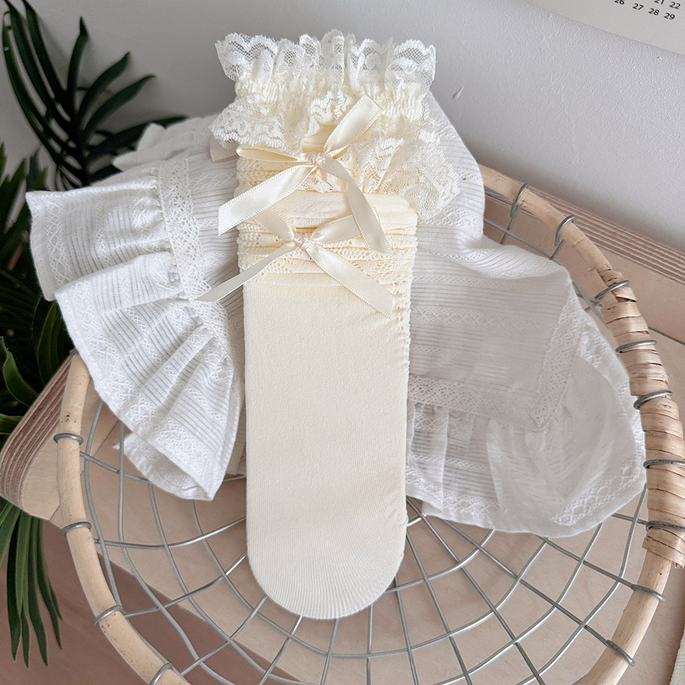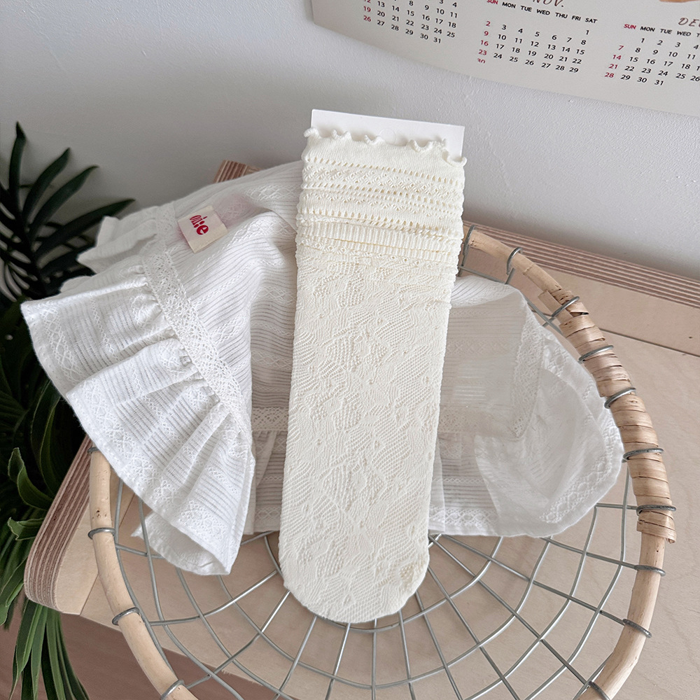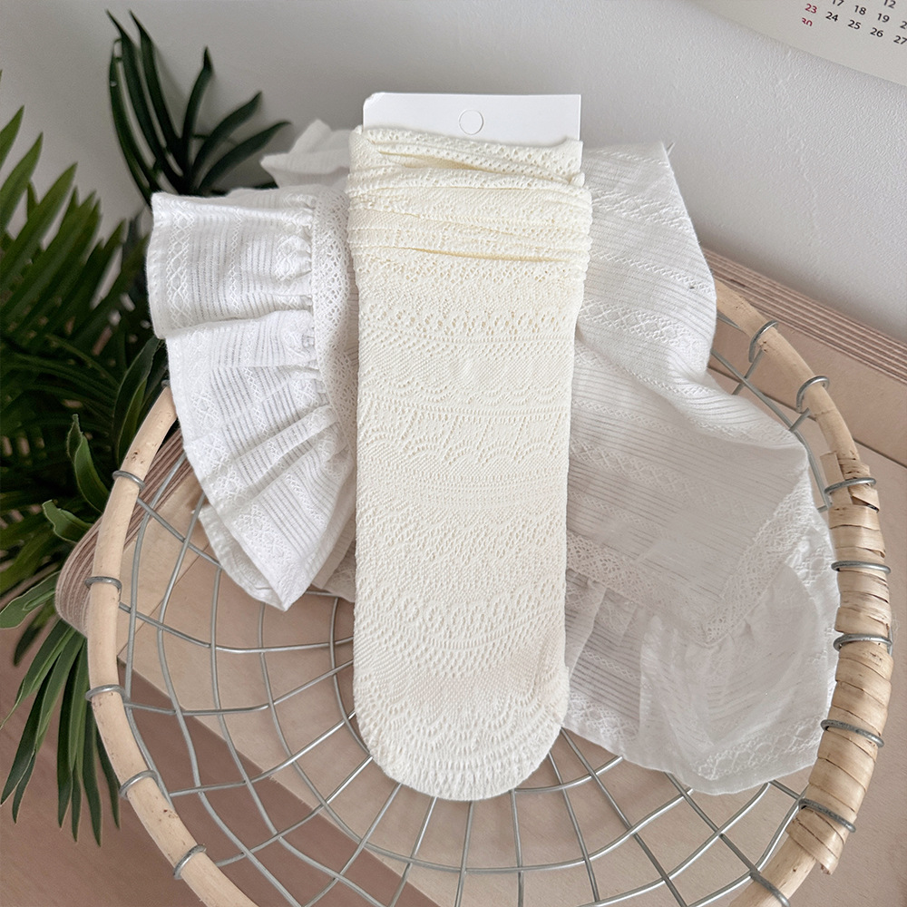 작은 가죽 신발 "여름 여성용 발레 스타일 레이스 양말 얇은 리본 miu 스타일 스택 스타킹 유백색