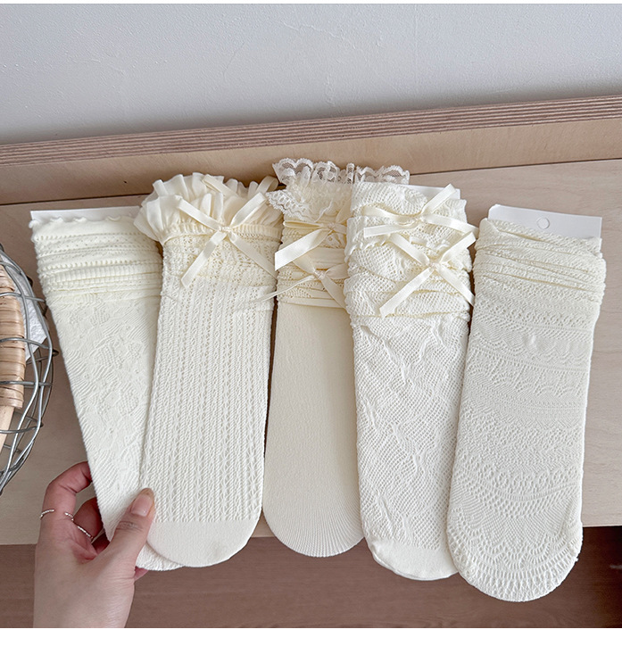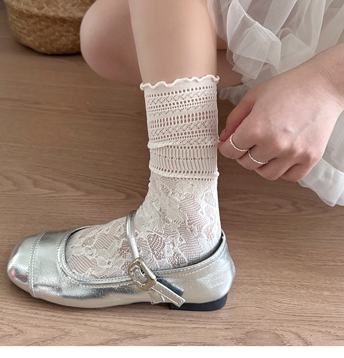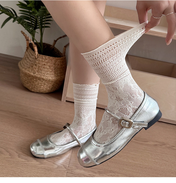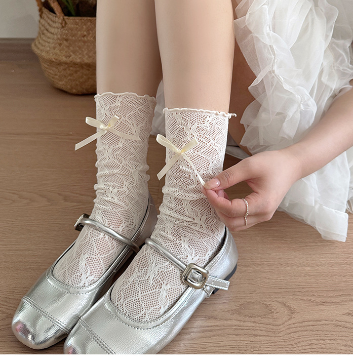 작은 가죽 신발 "여름 여성용 발레 스타일 레이스 양말 얇은 리본 miu 스타일 스택 스타킹 유백색스토어 가기