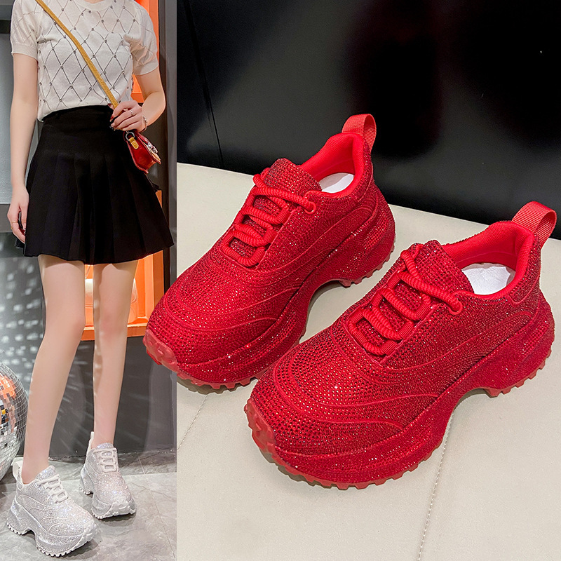 토레 신발, 슈퍼 파이어 라인 스톤 풀 다이아몬드 두꺼운 하단 플랫폼 7cm 작은 흰색 신발 캐주얼 운동화 여성 신발 트렌디스토어 가기