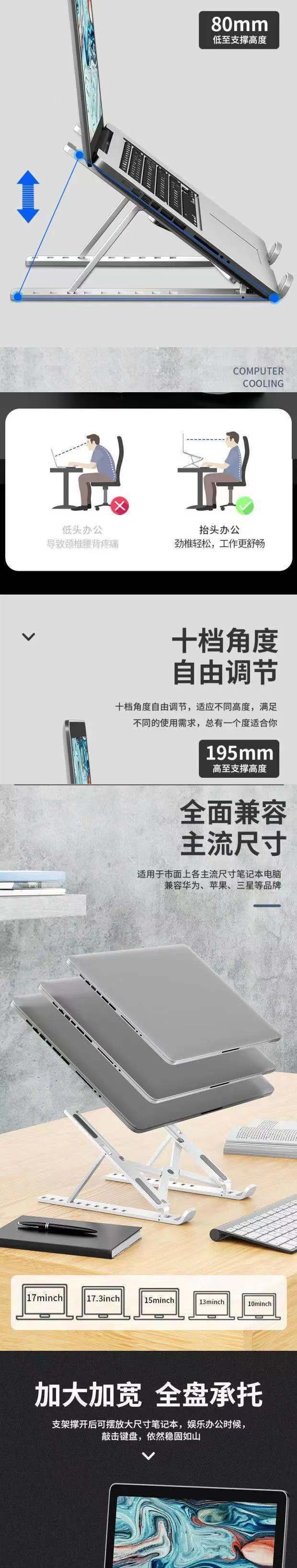 노트북 브래킷 리프팅 휴대용 다기능 고도 랙 조정 가능한 방열 브래킷 유니버설 안정 지원