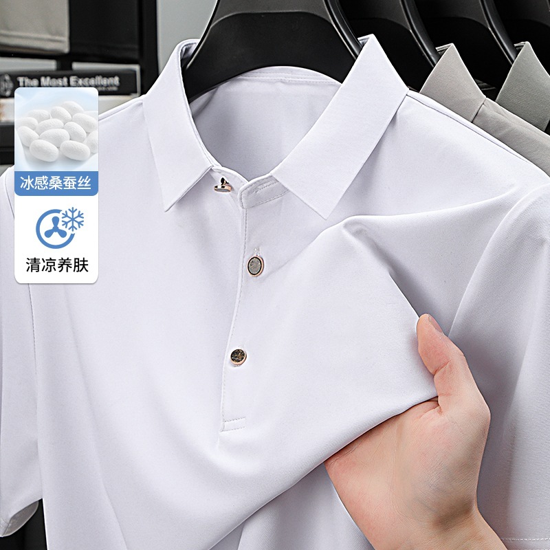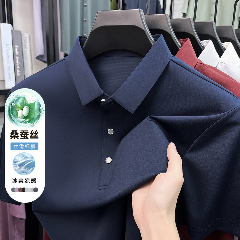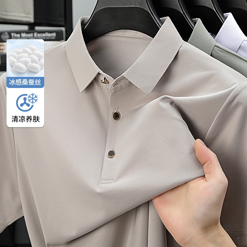여름용 빙실크 중년 남성 아빠복, 고급스러운 아이스 실크 남성용 반팔 티셔츠, 해외배송스토어 가기