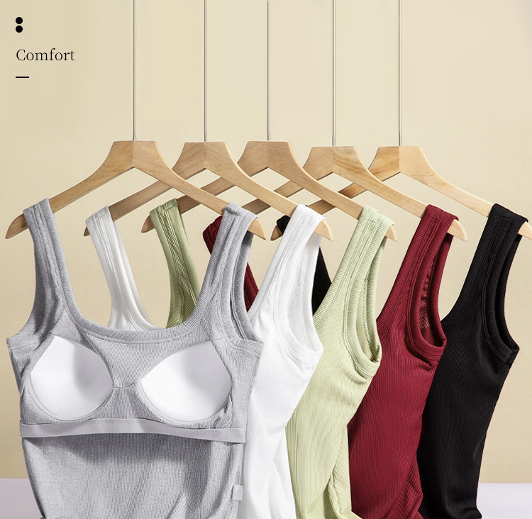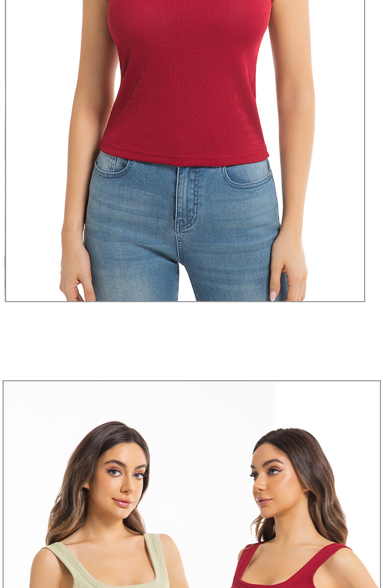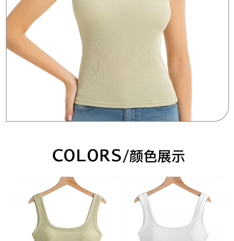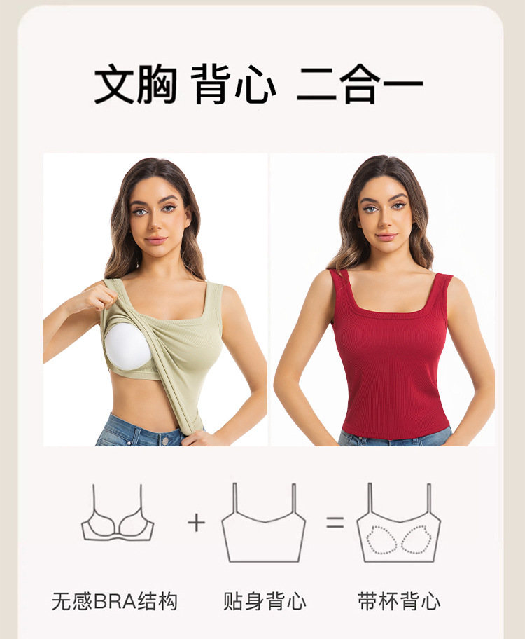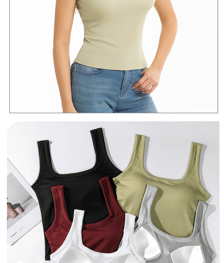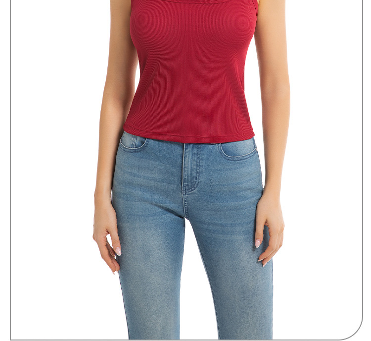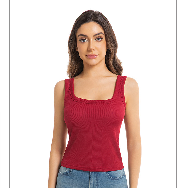 대외 무역 국경 간 유럽과 미국의 여성용 와이드 숄더 스퀘어 넥 조끼, 고정 컵 솔리드 컬러 아우터웨어, 아름다운 등, 대형 바닥 스레드 조끼스토어 가기