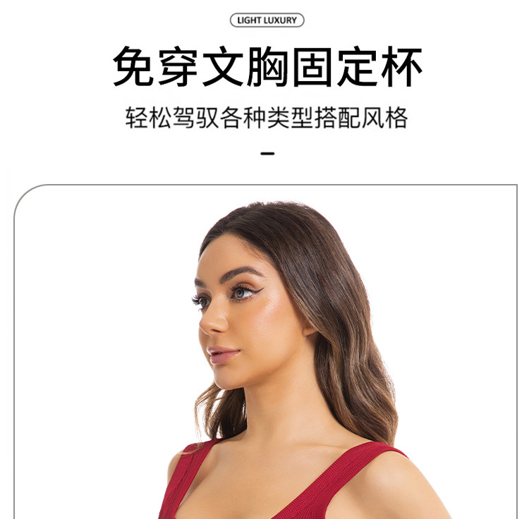 대외 무역 국경 간 유럽과 미국의 여성용 와이드 숄더 스퀘어 넥 조끼, 고정 컵 솔리드 컬러 아우터웨어, 아름다운 등, 대형 바닥 스레드 조끼
