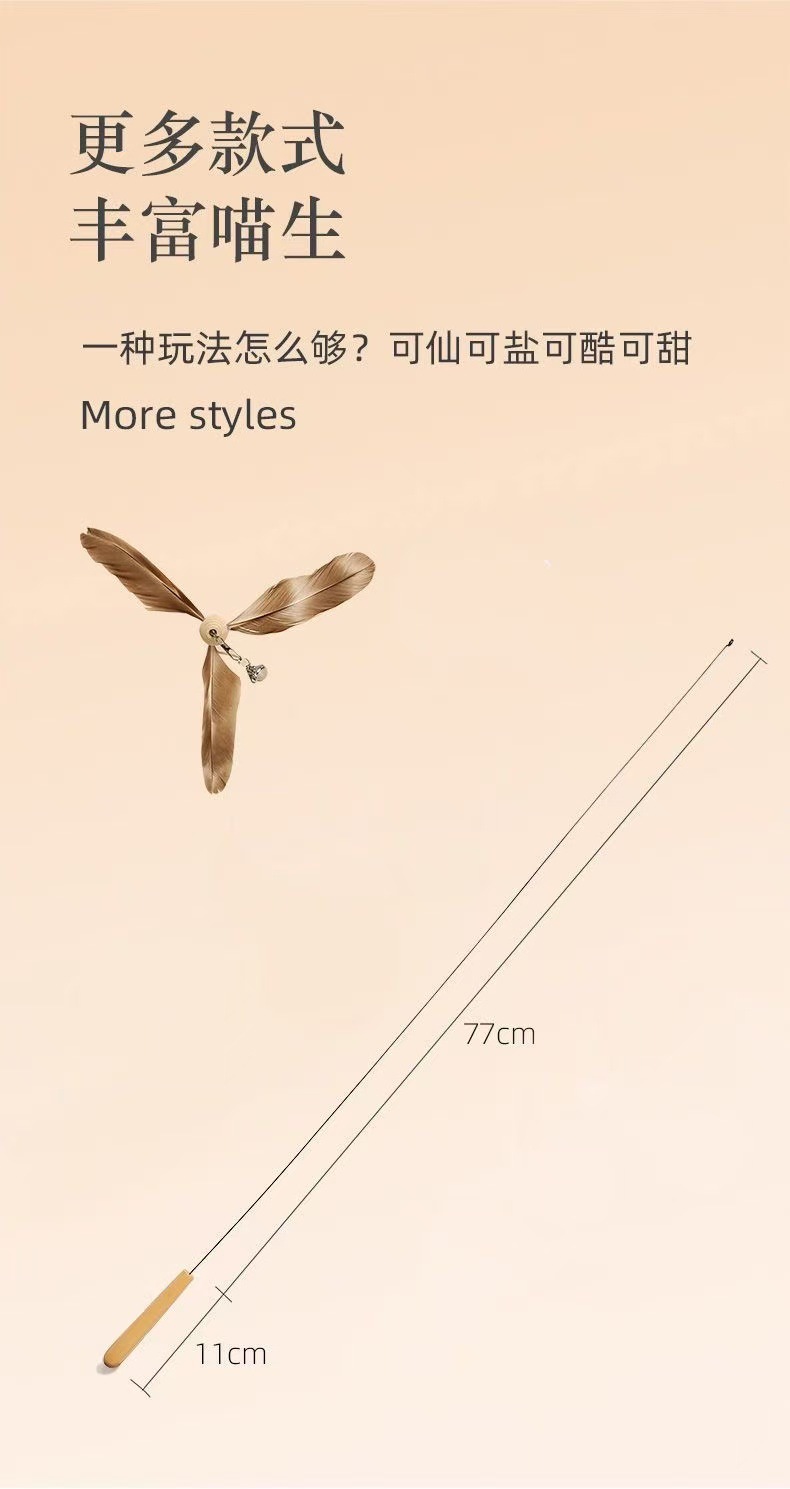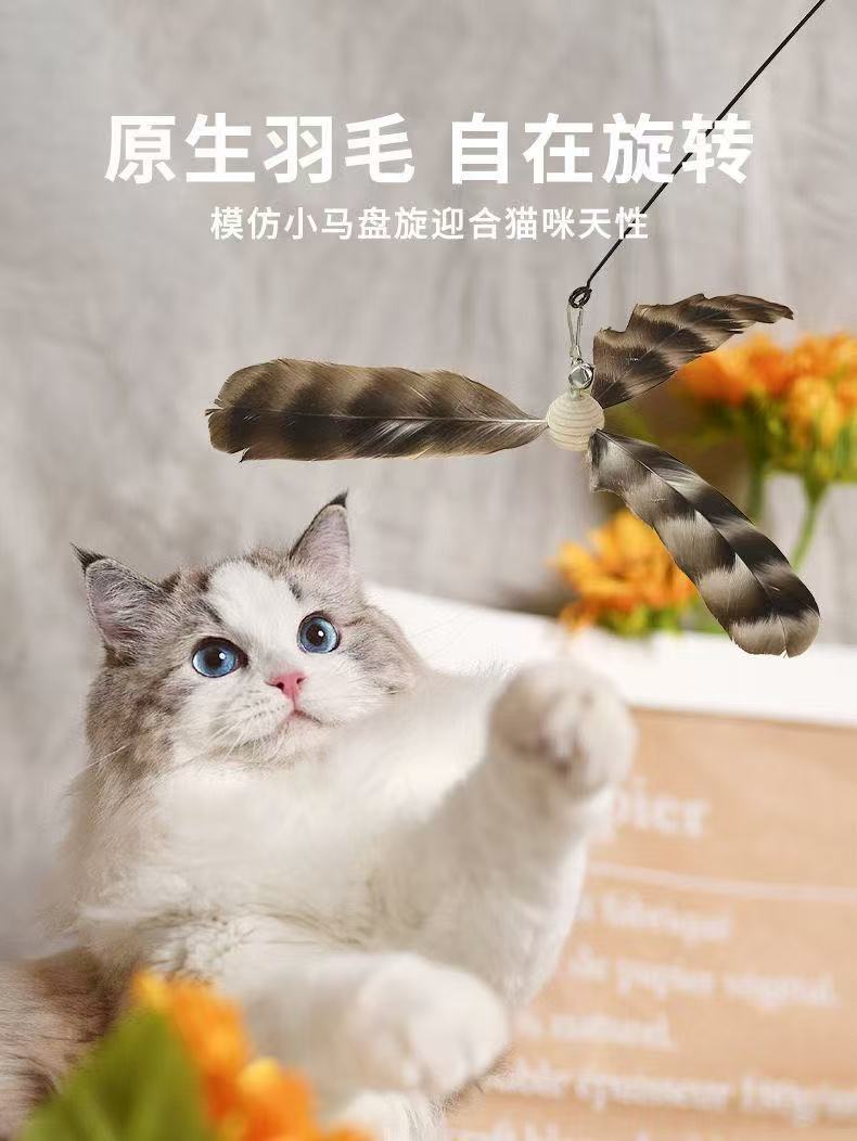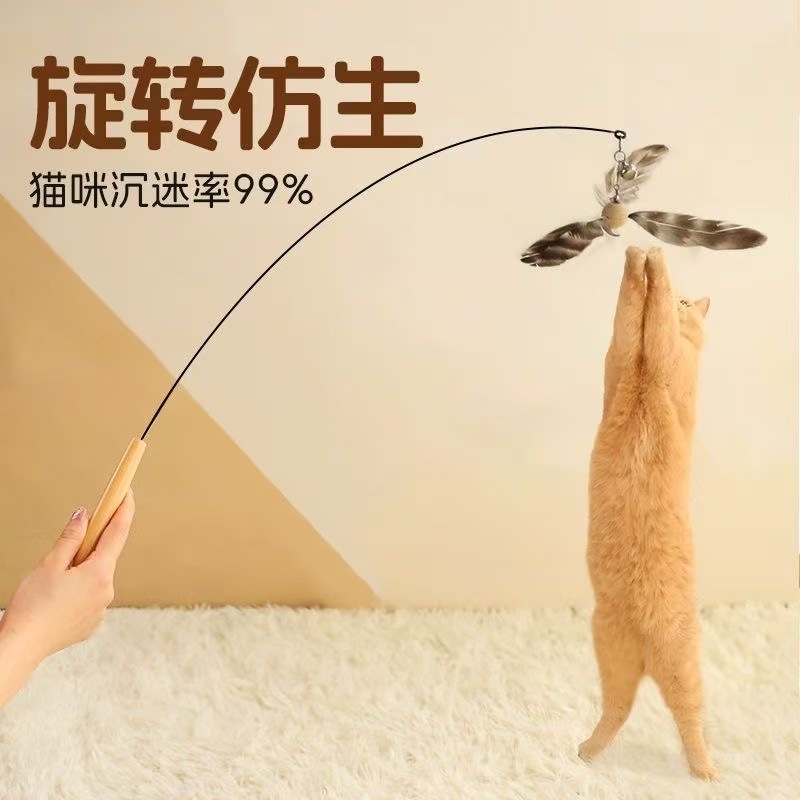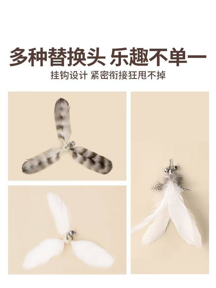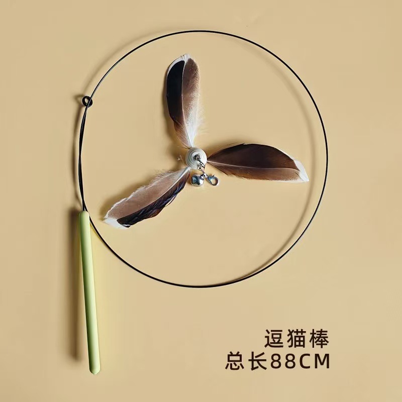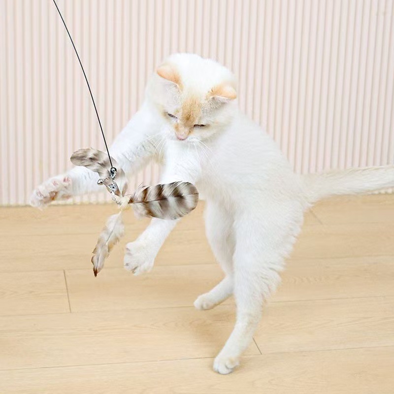 고양이 장난감 회전하는 대나무 날파리 장난감 긴 막대 철사 깃털 벨 포함 교체 가능한 헤드 애완 고양이 새끼 고양이용
