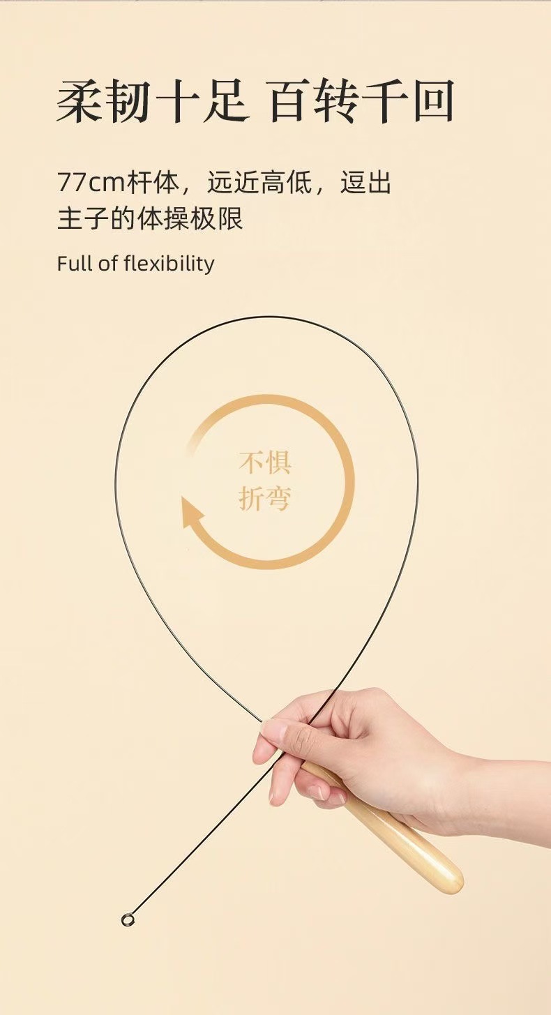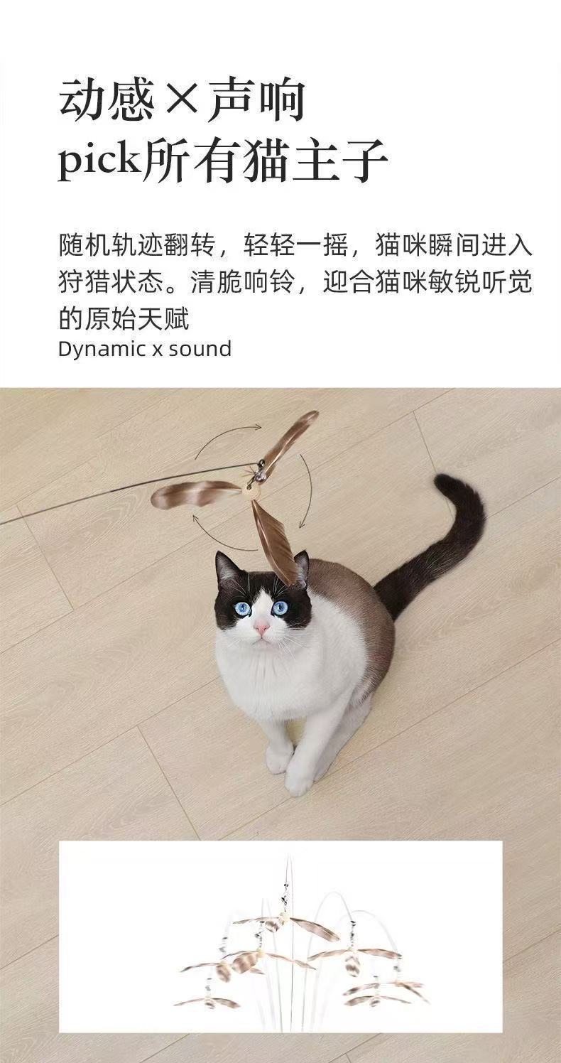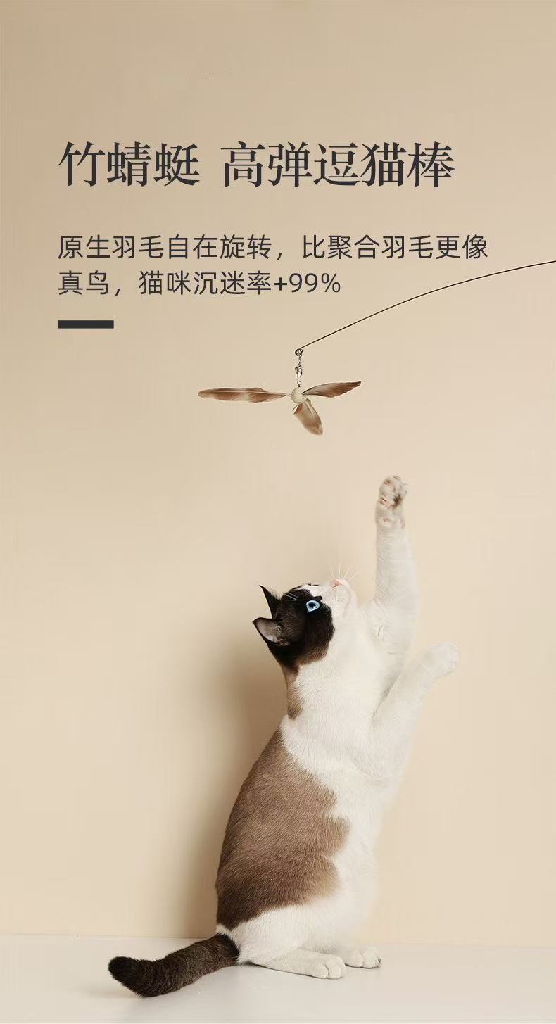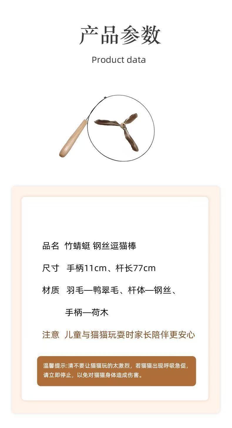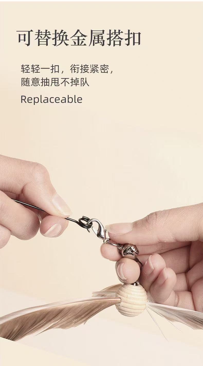 고양이 장난감 회전하는 대나무 날파리 장난감 긴 막대 철사 깃털 벨 포함 교체 가능한 헤드 애완 고양이 새끼 고양이용