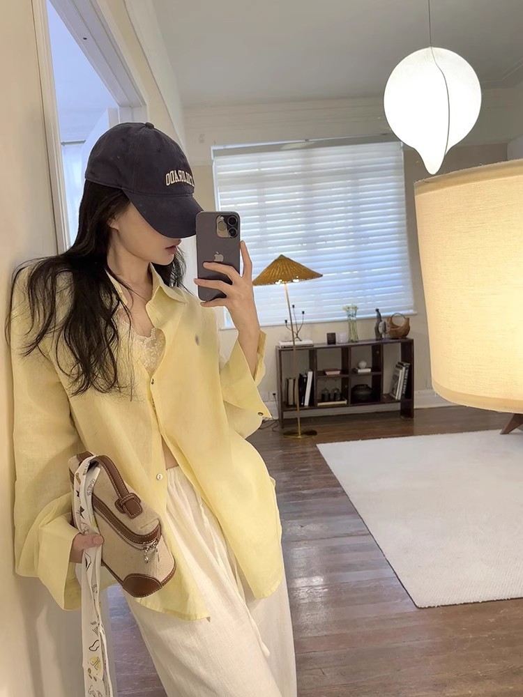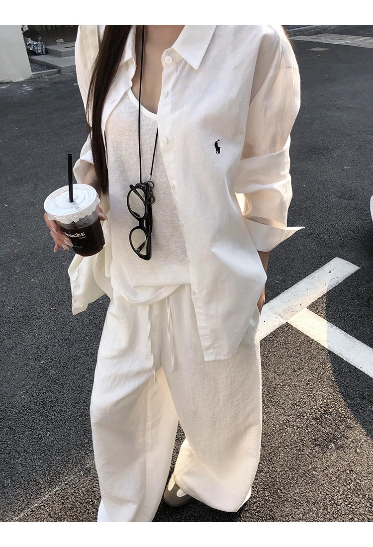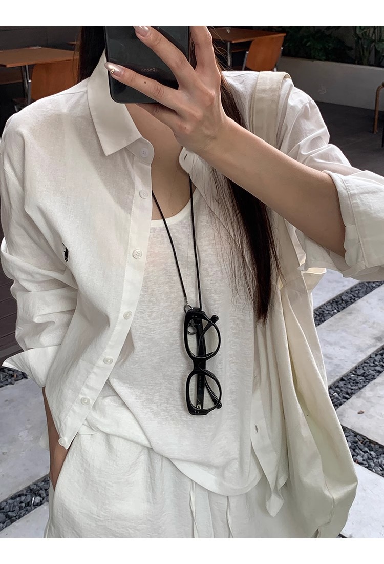 라프 포니 로고 자수 리넨 셔츠 여성용 2026 봄 여름 신상 루즈핏 캐주얼 긴팔 자외선 차단 셔츠 다용도