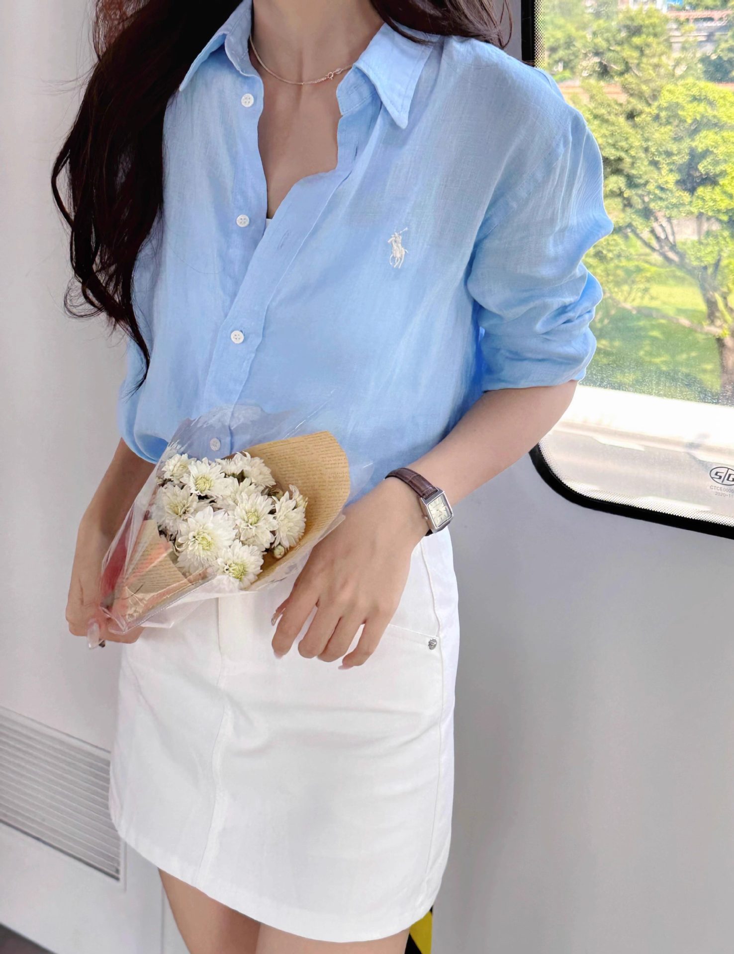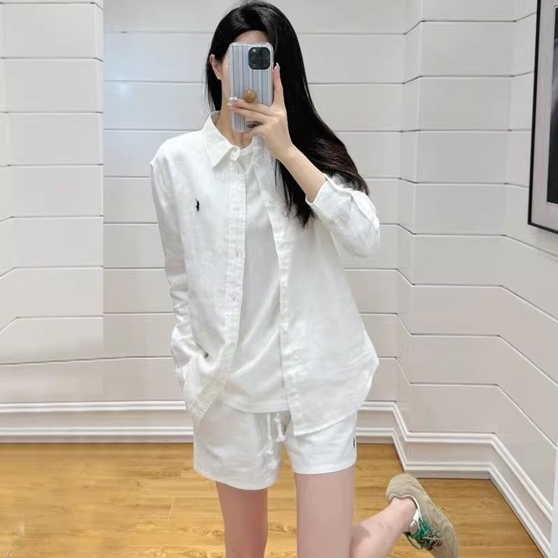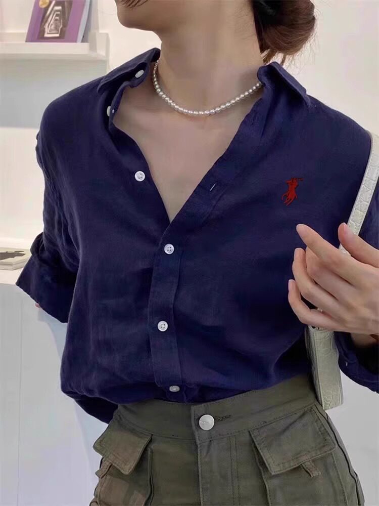 라프 포니 로고 자수 리넨 셔츠 여성용 2026 봄 여름 신상 루즈핏 캐주얼 긴팔 자외선 차단 셔츠 다용도스토어 가기