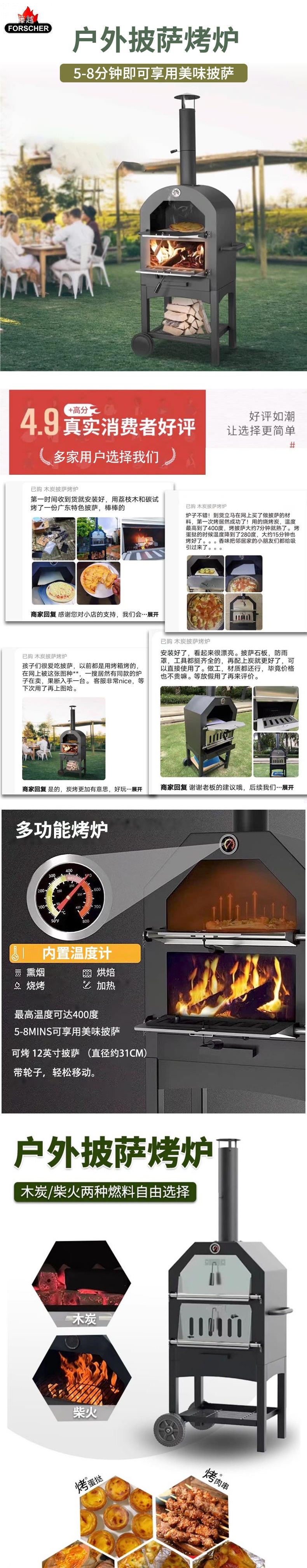 야외 피자 오븐 숯 장작 이중 목적 BBQ 오븐 가정용 상업용 빵 가마 스테인레스 스틸 PIZZ