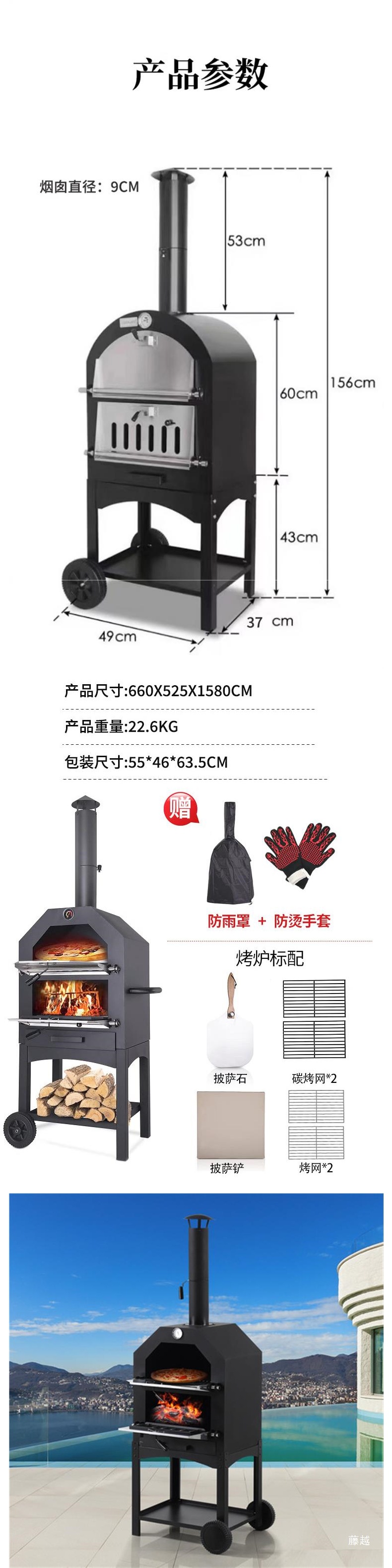 • 숯불 피자 오븐(무료 레인 커버 + 화상 방지 장갑)(장작을 태울 수 있음)