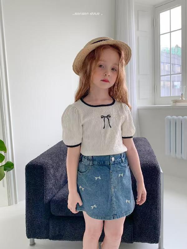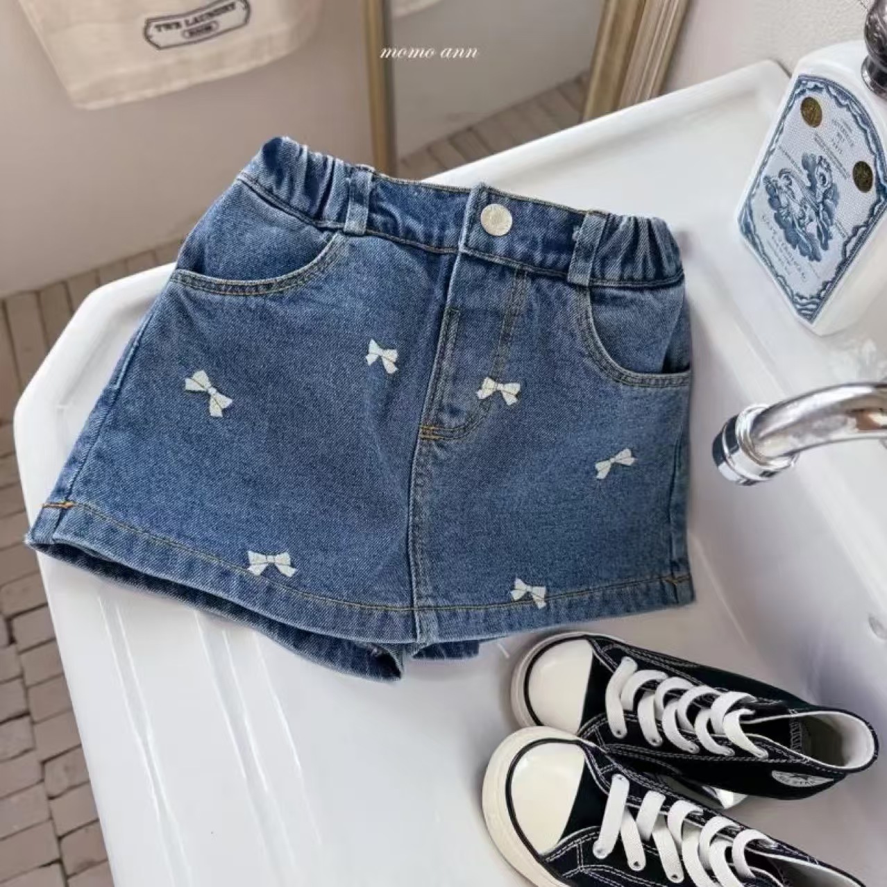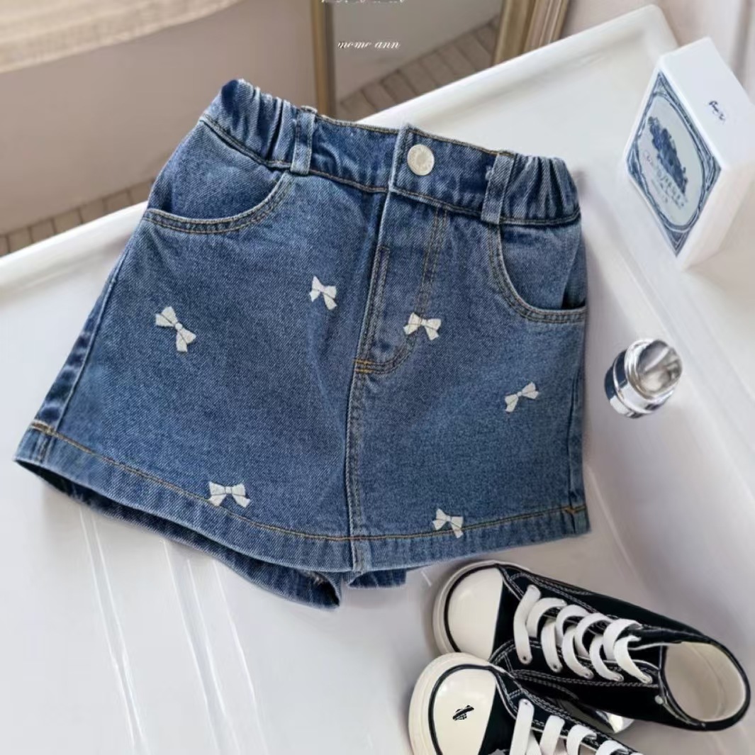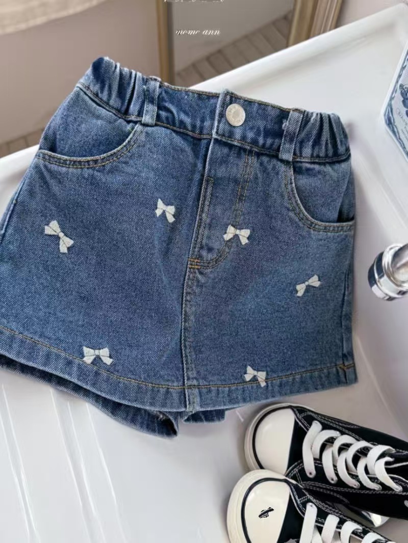 한국 아동복 신상 스커트 봄 여름 여아 자수 리본 워싱 데님 스타일 A라인 스커트