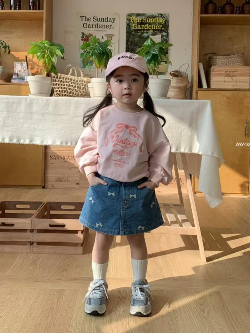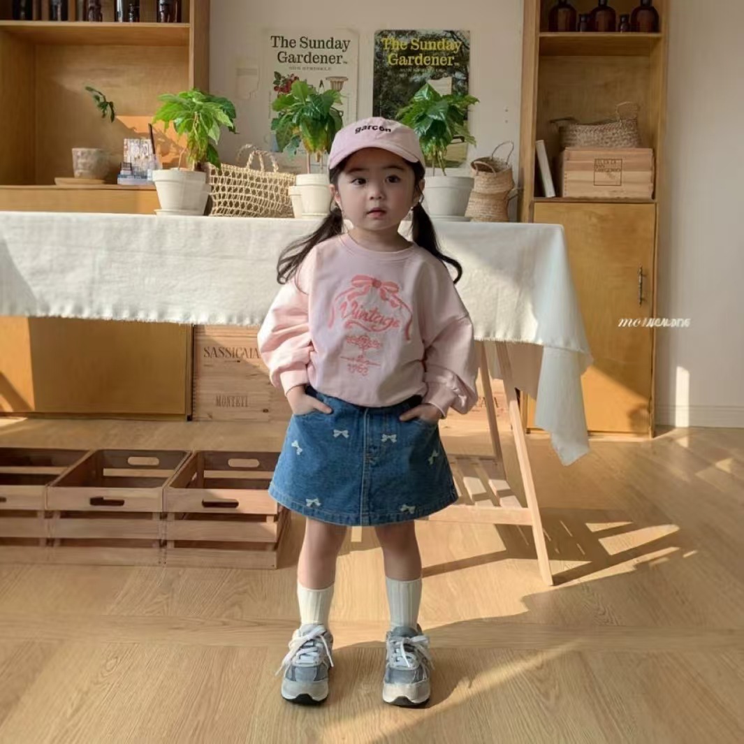 한국 아동복 신상 스커트 봄 여름 여아 자수 리본 워싱 데님 스타일 A라인 스커트스토어 가기