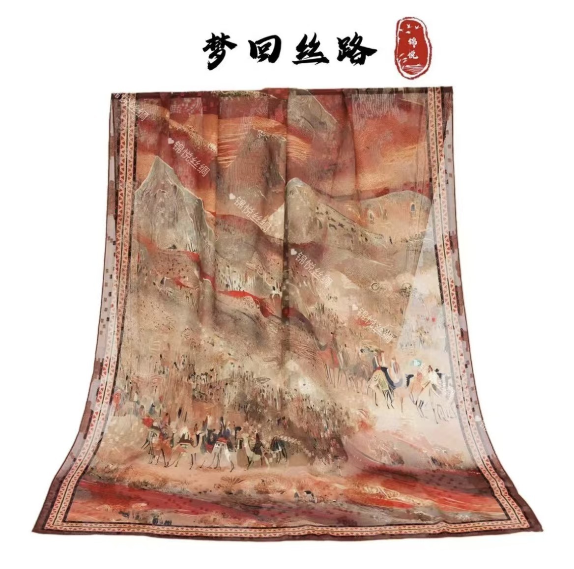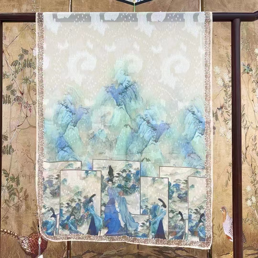 2025 새로운 둔황 수제 컷 꽃 목도리 180*70 향기로운 구름 거즈 스카프 긴 자카드 단면 스카프 여성스토어 가기