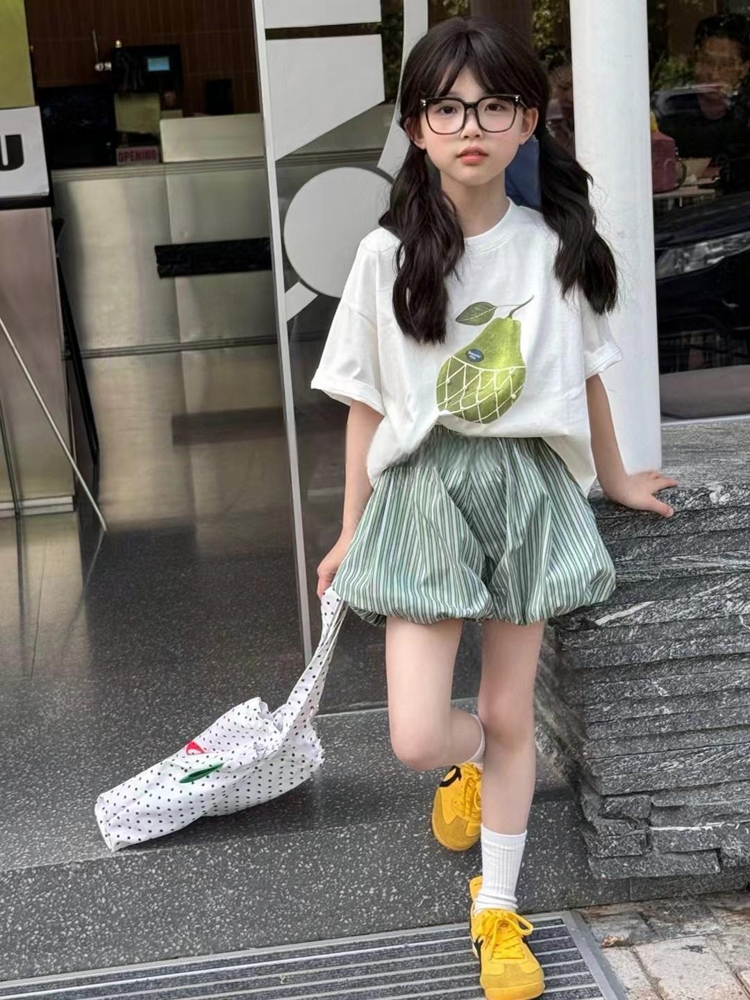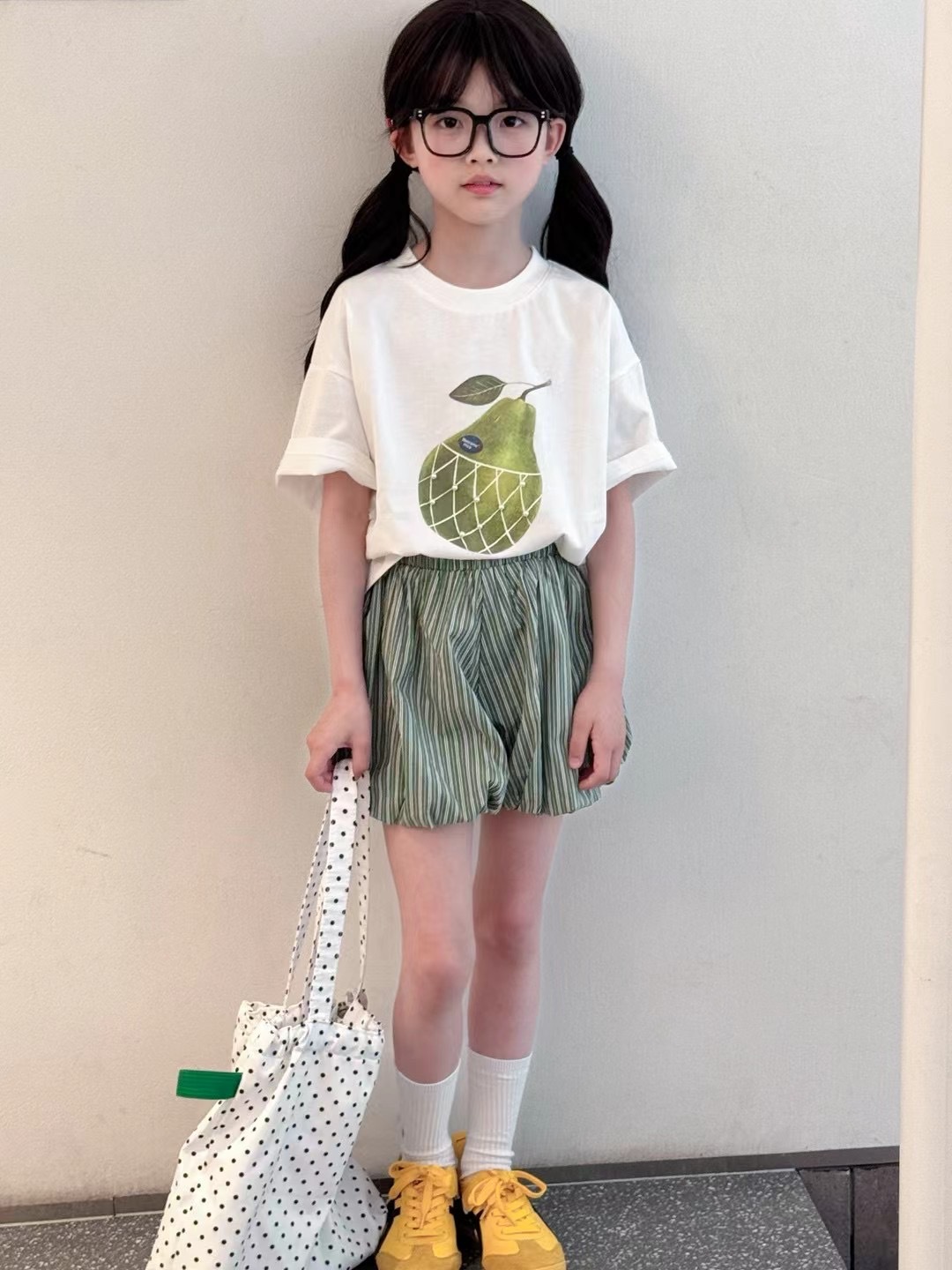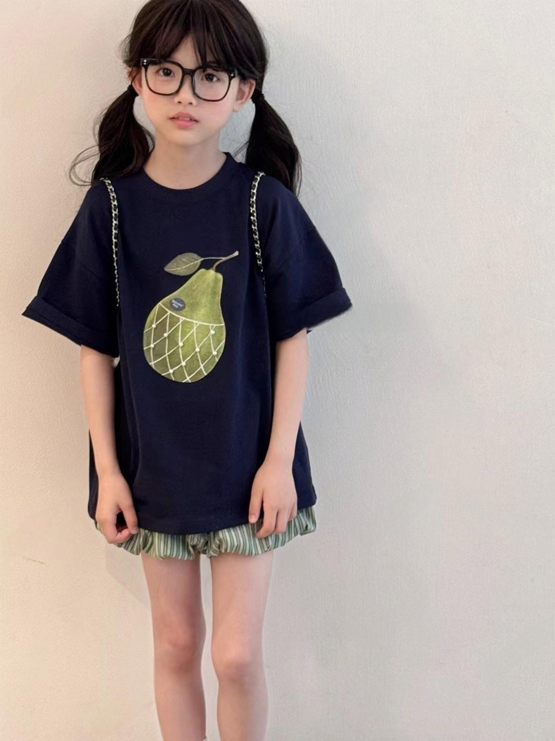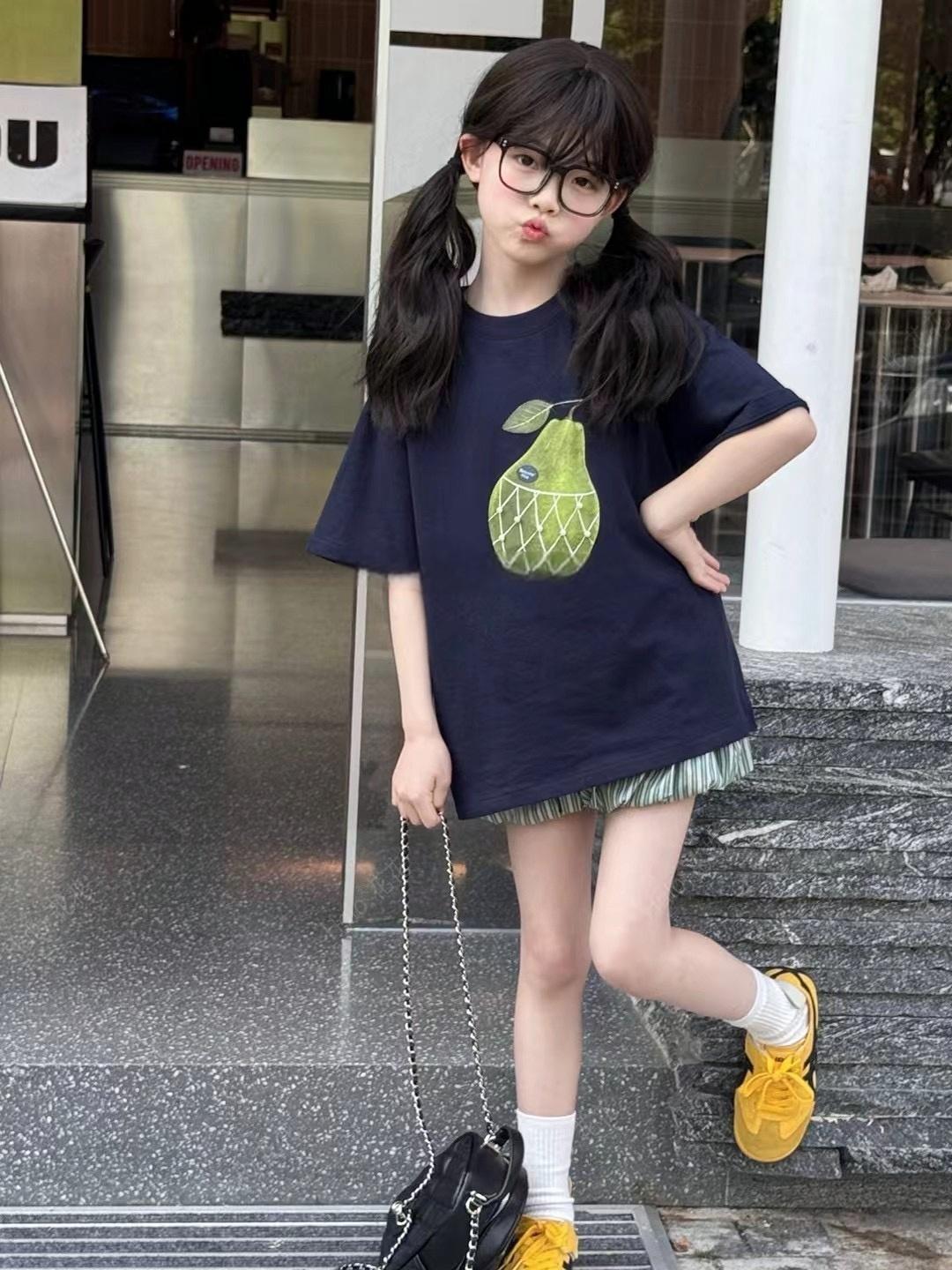 보라 한국 아동복 25 여름 소년 소녀를위한 새로운 어린이 탑 과일 인쇄 티셔츠 짧은 소매스토어 가기