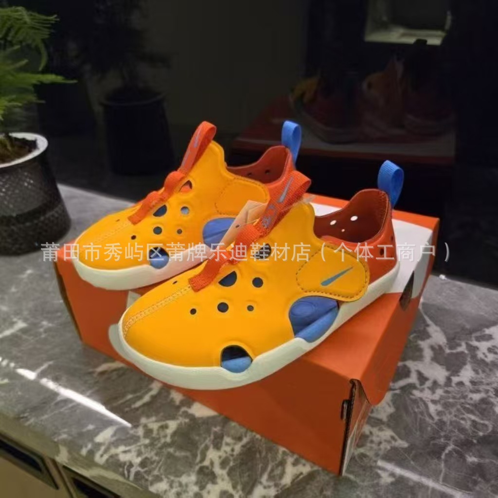 Putong의 새로운 NK 항공기 4세대 어린이 샌들 소년 소녀용 발가락 발 보호 구멍 신발 벨크로 베이비 샌들스토어 가기