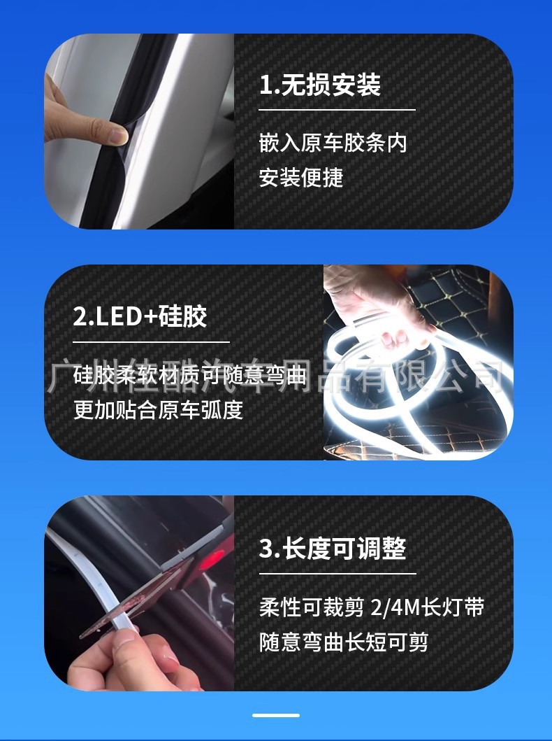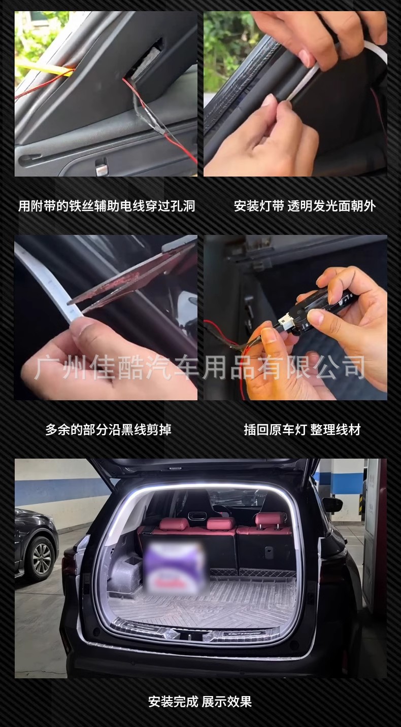 자동차 트렁크 주변 조명 실리콘 LED 자동차 장식 조명 분위기 조명 전면 및 후면 트렁크 조명 스트립