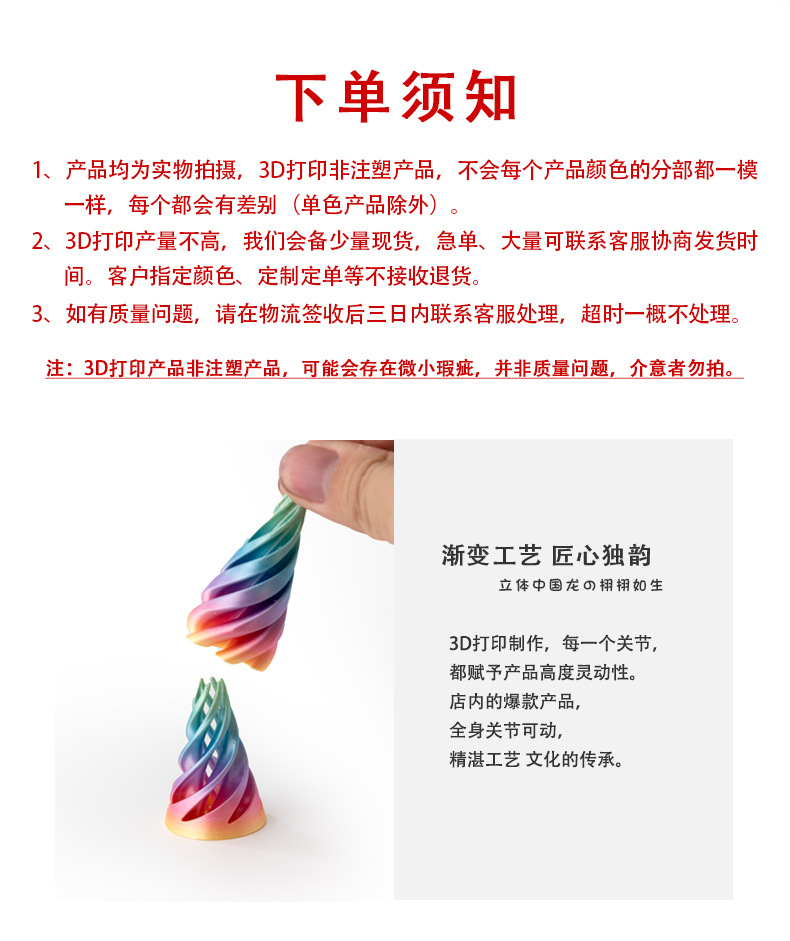 3D 프린팅 감압 나선형 입체 손가락 장난감 트위스트 구조 이중 색상 교차 국경 트위스트 구조 장식품