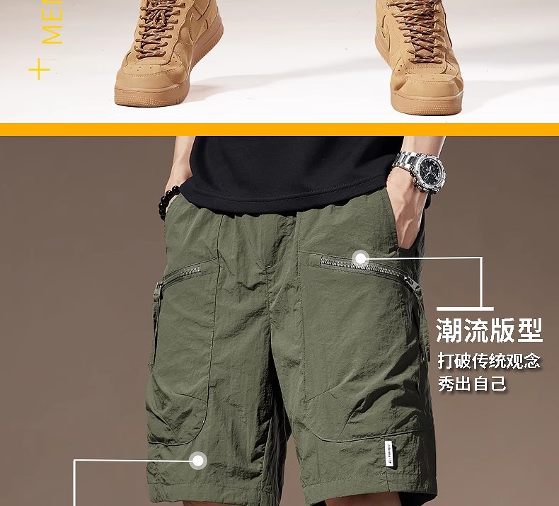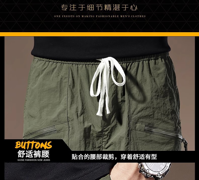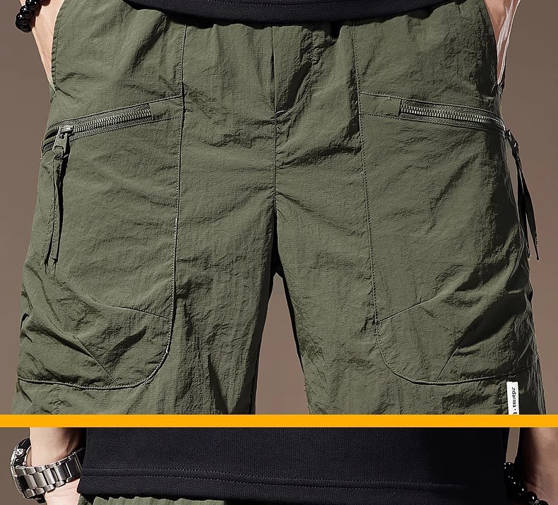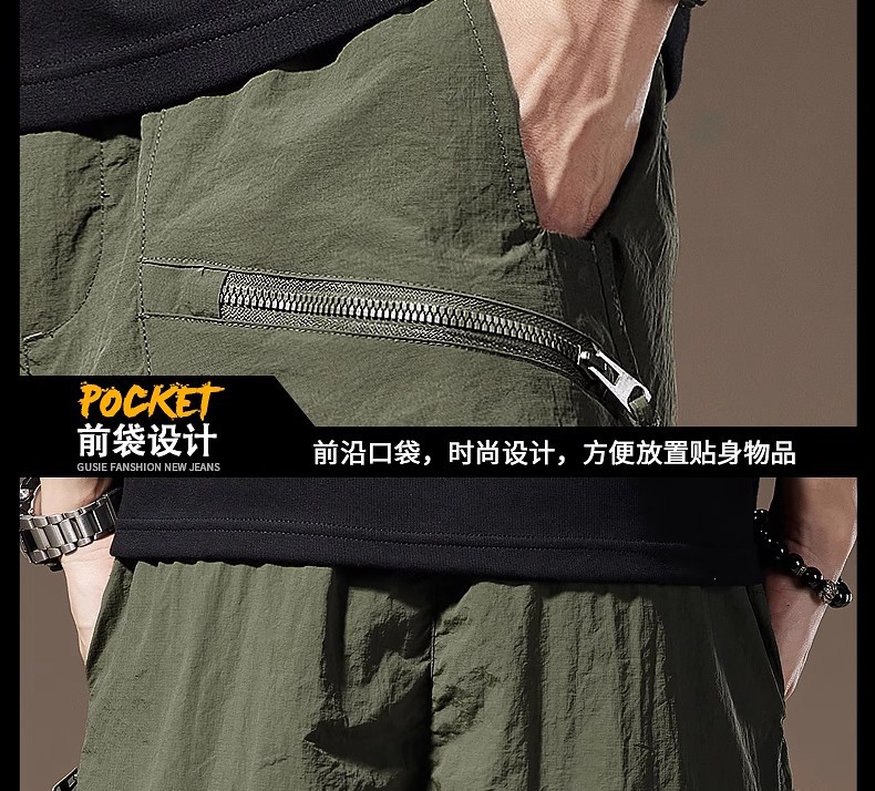 여름 아이스 실크 얇은 아메리칸 스타일 툴링 반바지 남성용 빠른 건조 느슨한 멀티 포켓 캐주얼 야외 바지