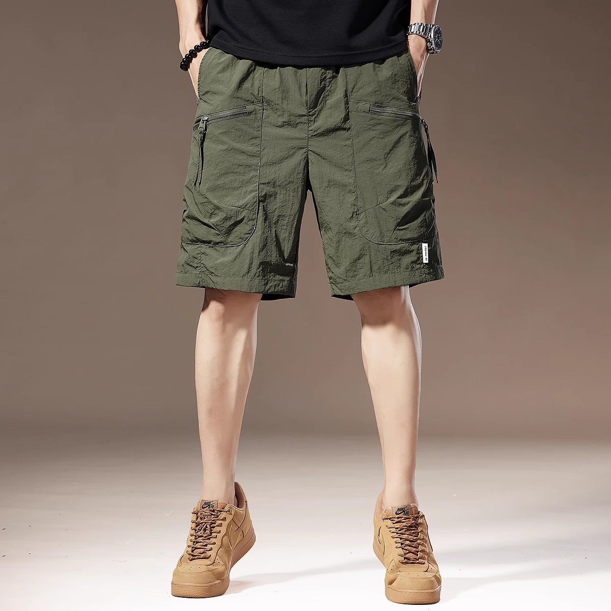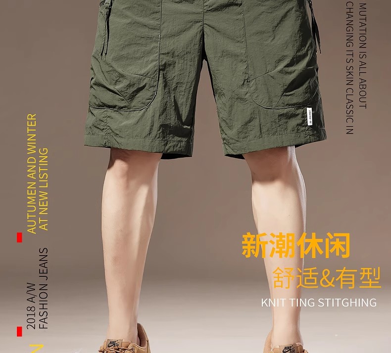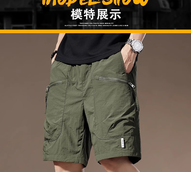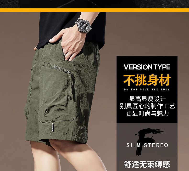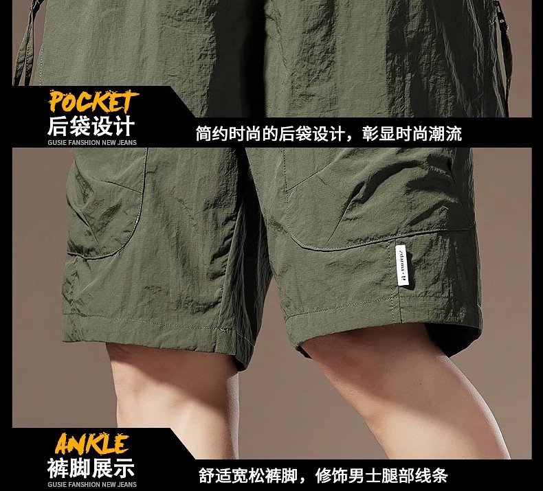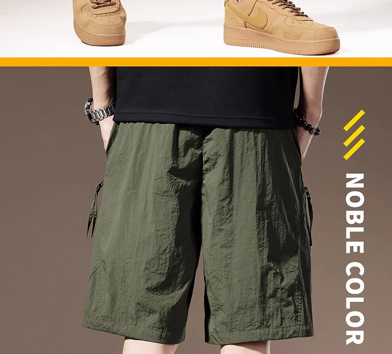여름 아이스 실크 얇은 아메리칸 스타일 툴링 반바지 남성용 빠른 건조 느슨한 멀티 포켓 캐주얼 야외 바지스토어 가기