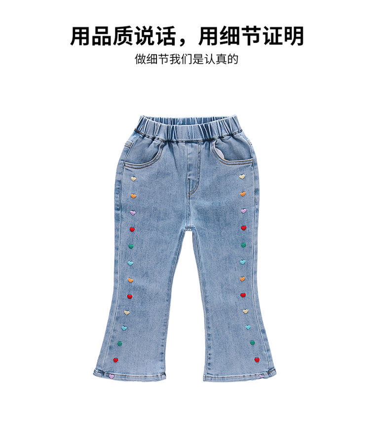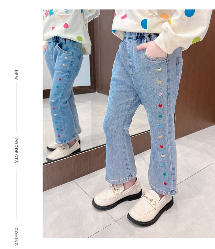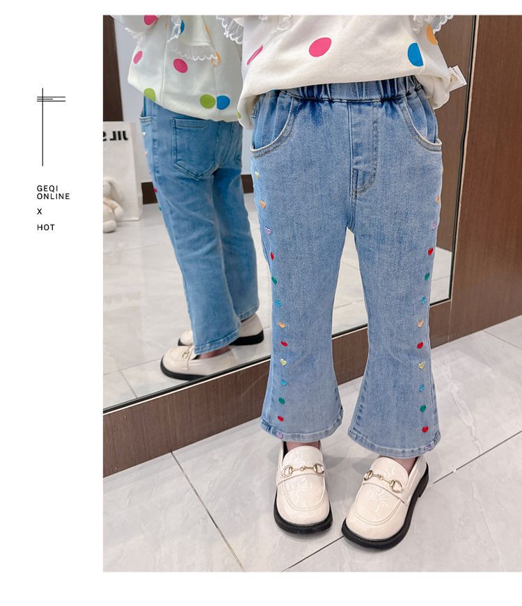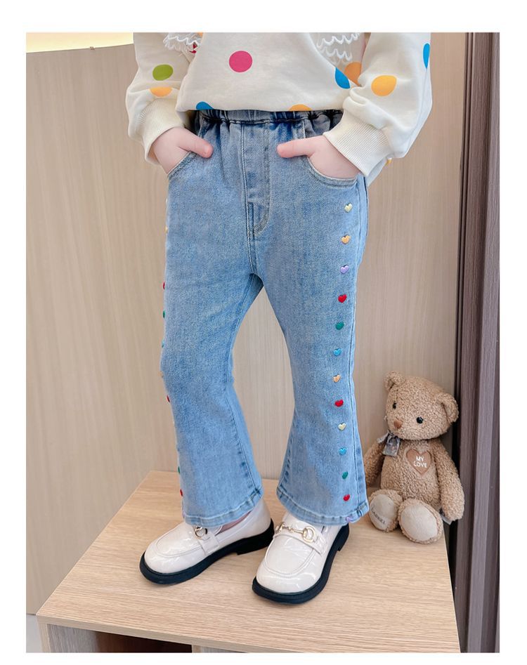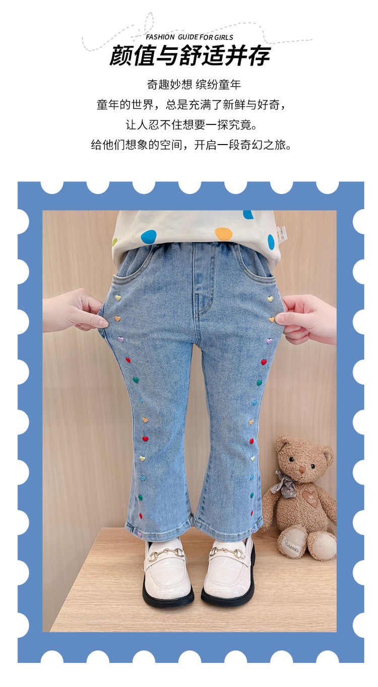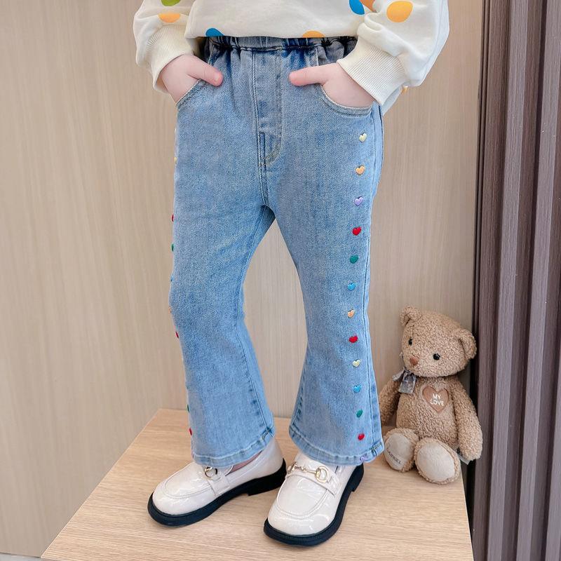 2025 여자 청바지 봄과 가을 새로운 스타일 아기 소녀 바지 봄 한국 스타일 서양식 플레어 바지스토어 가기