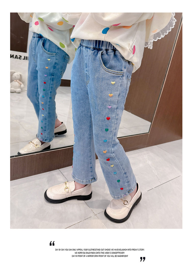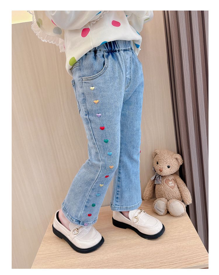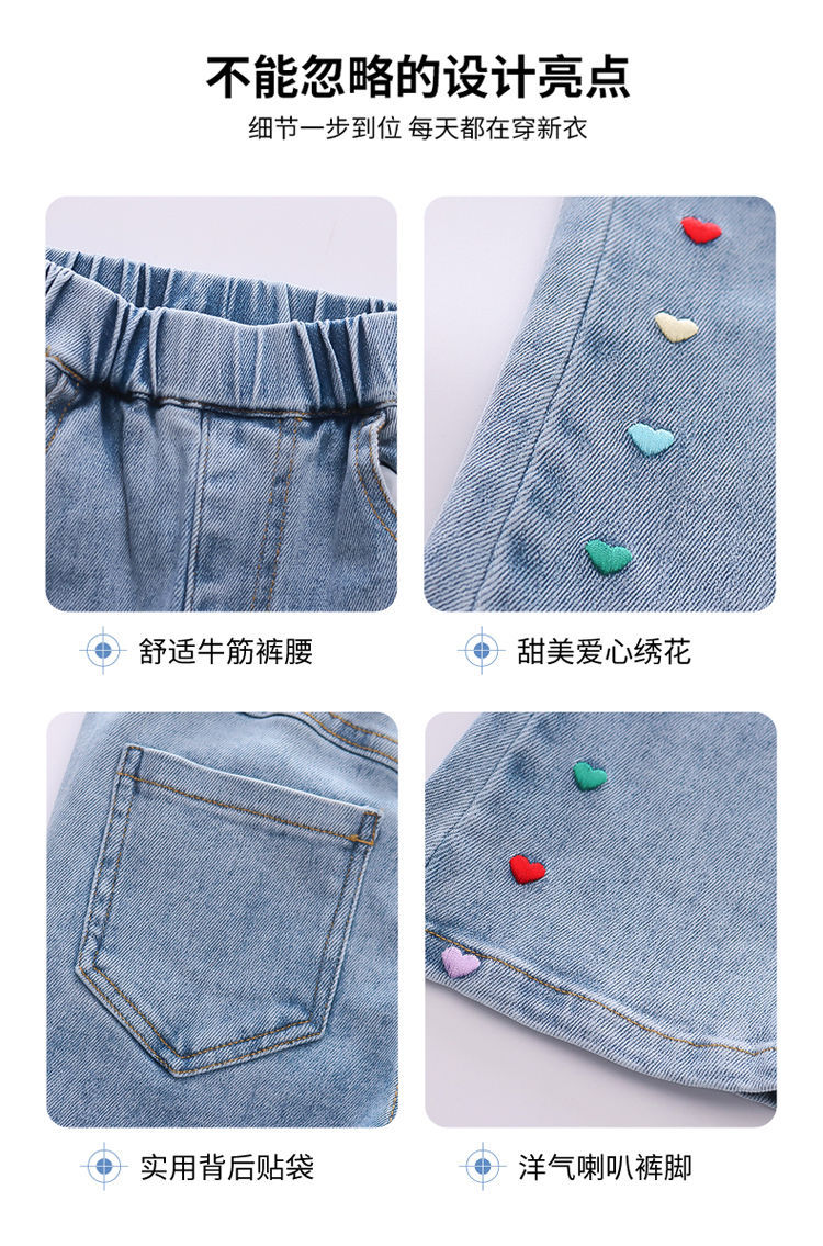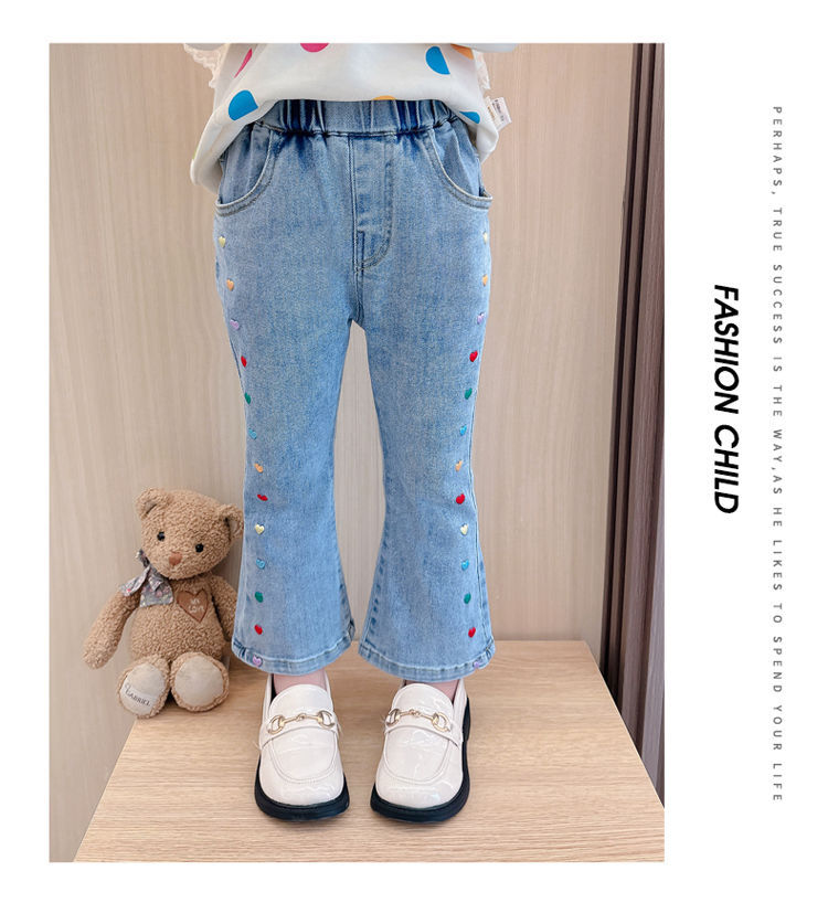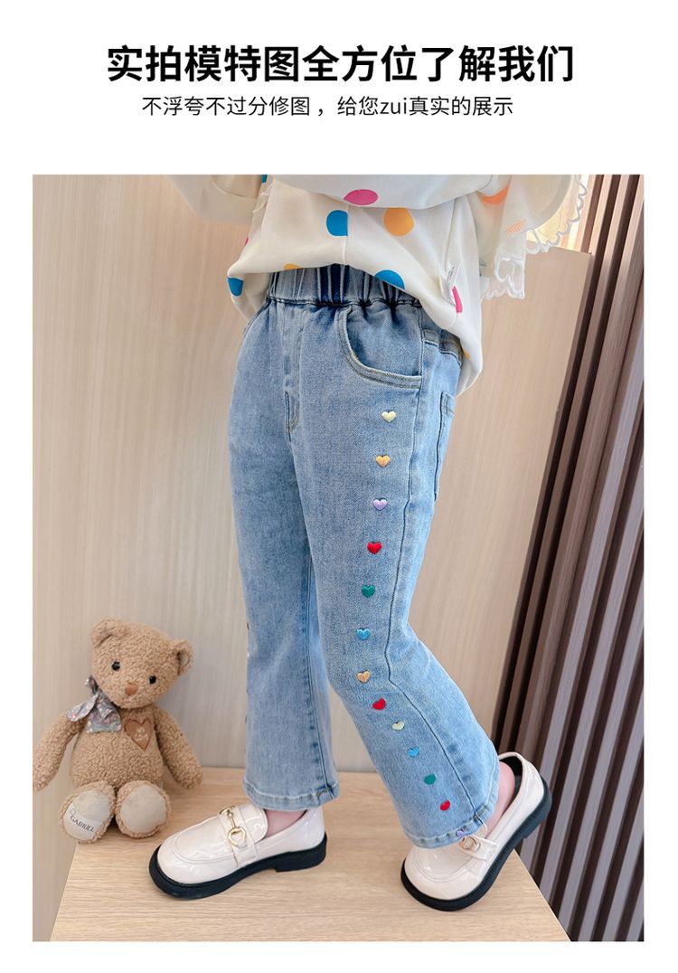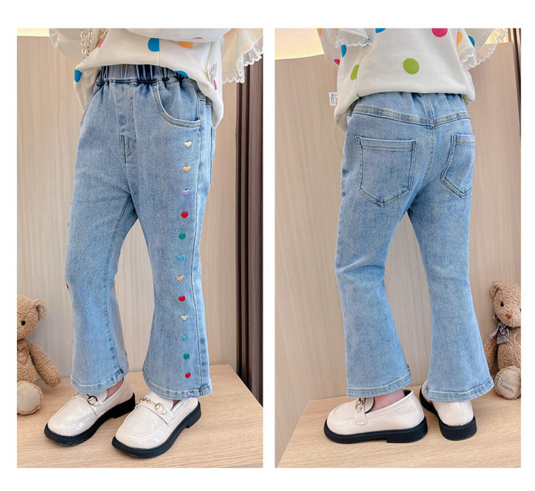 2025 여자 청바지 봄과 가을 새로운 스타일 아기 소녀 바지 봄 한국 스타일 서양식 플레어 바지스토어 가기