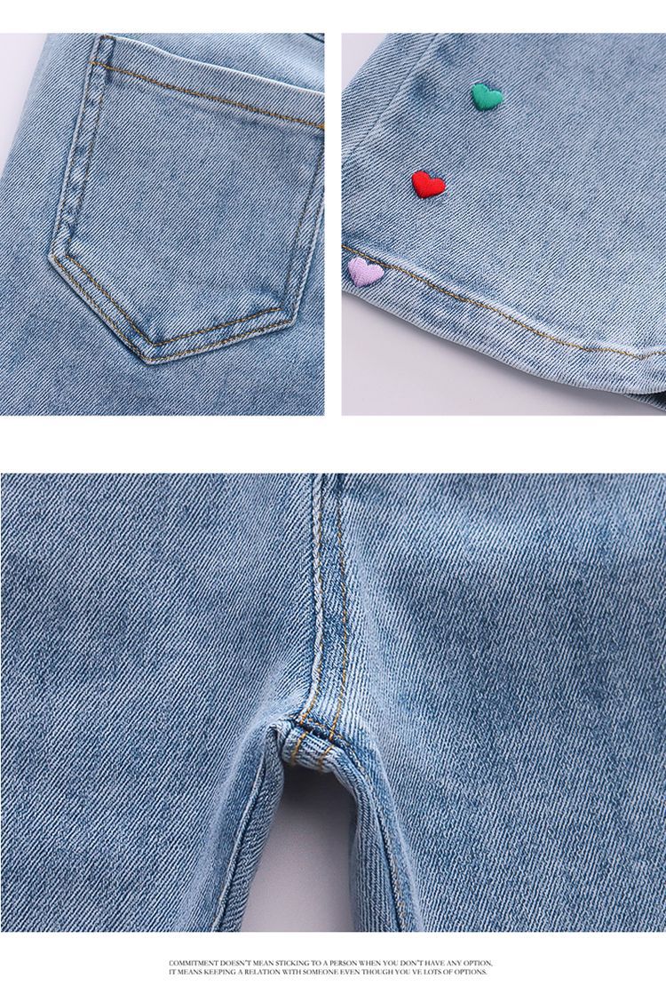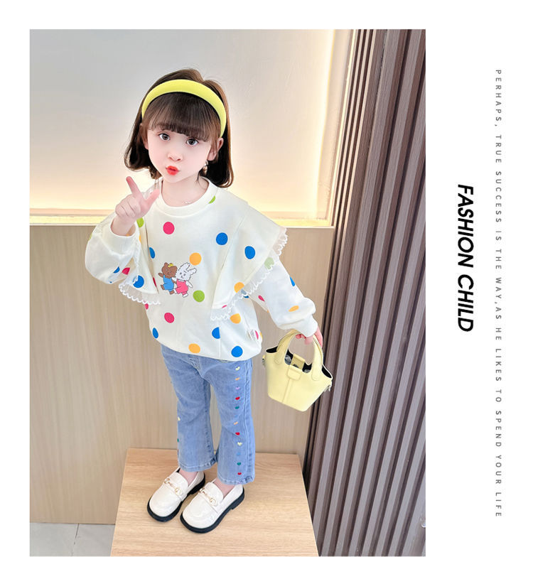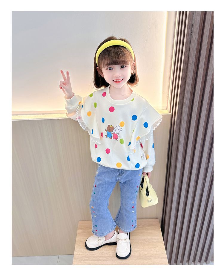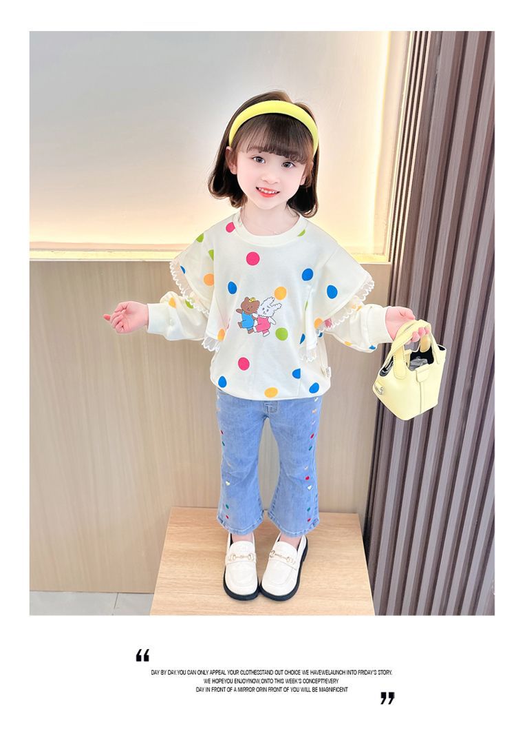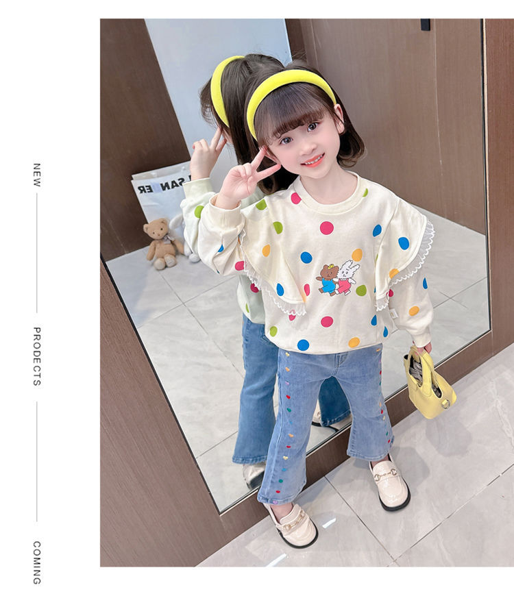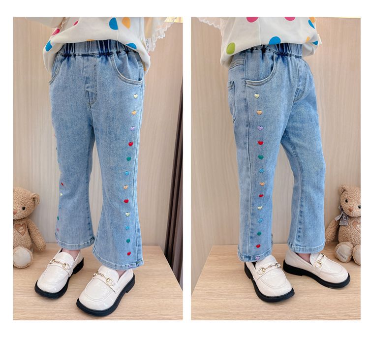 2025 여자 청바지 봄과 가을 새로운 스타일 아기 소녀 바지 봄 한국 스타일 서양식 플레어 바지스토어 가기