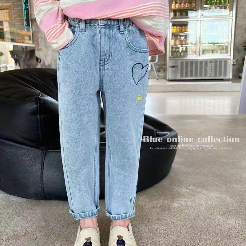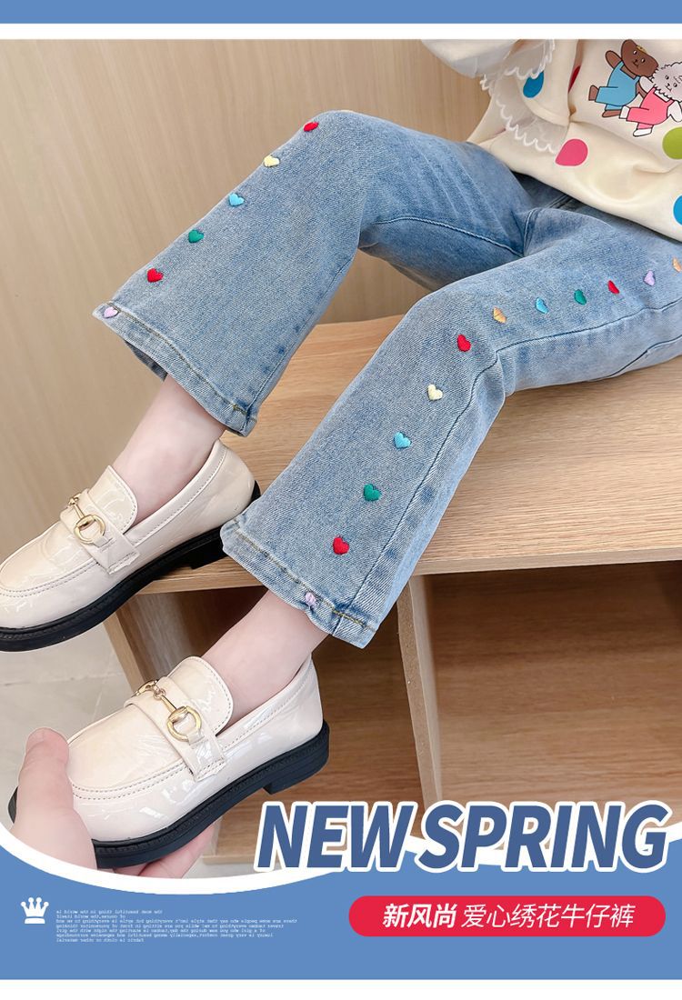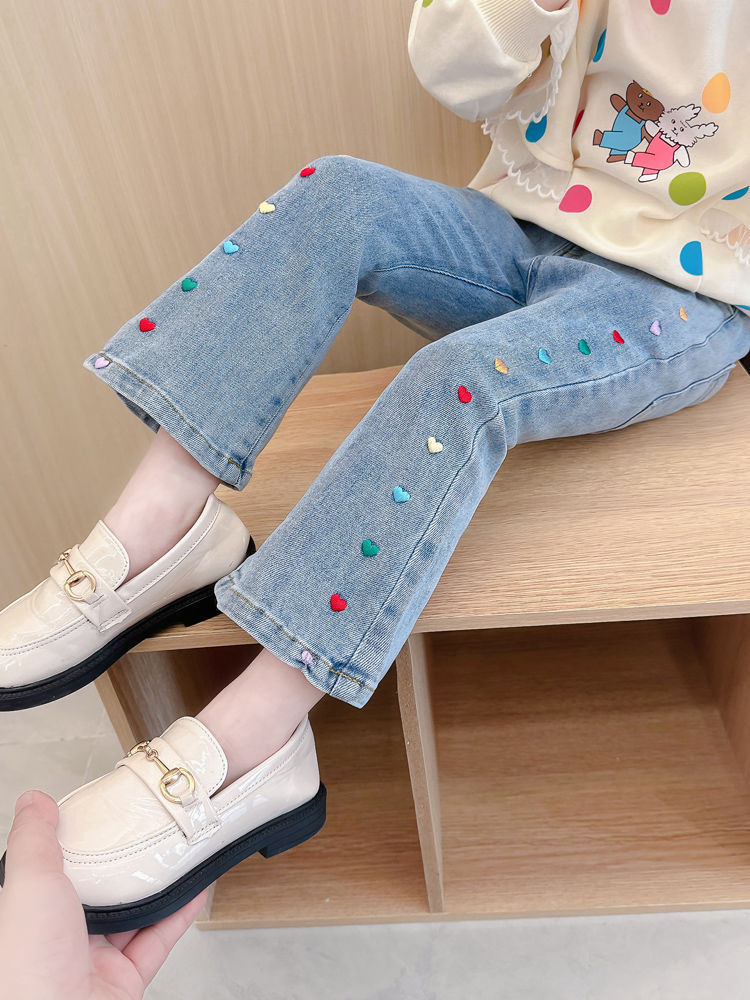 2025 여자 청바지 봄과 가을 새로운 스타일 아기 소녀 바지 봄 한국 스타일 서양식 플레어 바지
