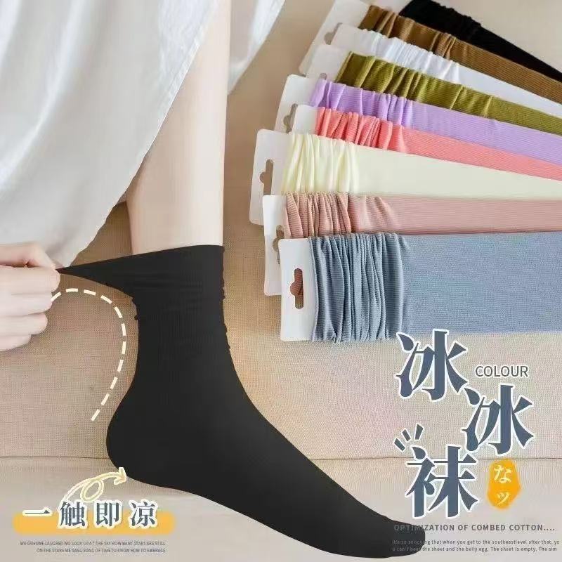 【드롭쉬핑】여성용 양말, 여름용 아이스 실크 스포츠 중목 양말, 도매, 캐주얼, 다용도, 땀 흡수
