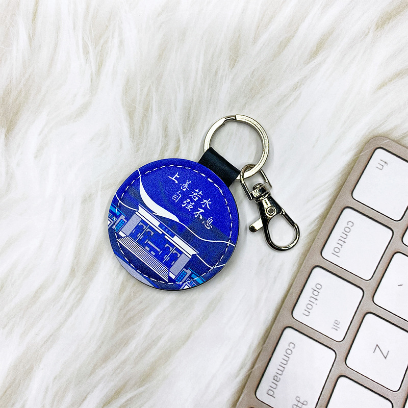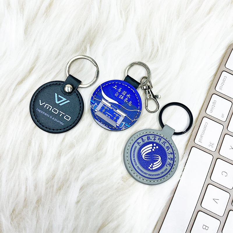 PU 라운드 액세스 제어 키 체인 맞춤형 가죽 학교 배지 키 체인 맞춤형 가방 액세서리 펜던트 자동차 키 체인