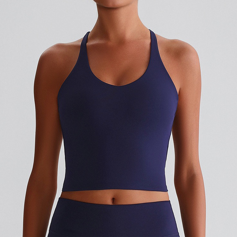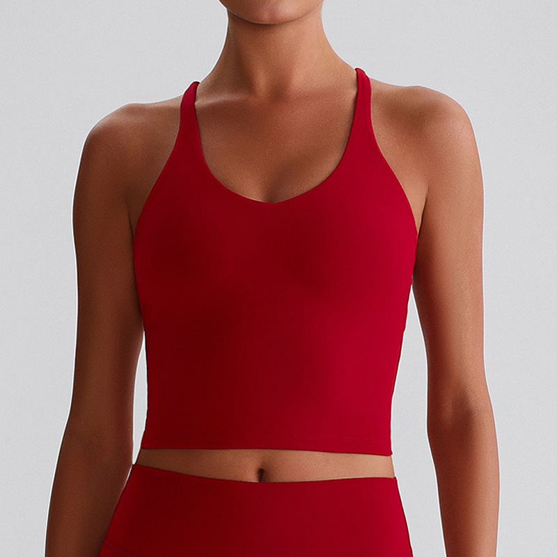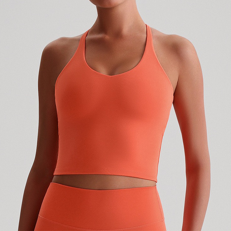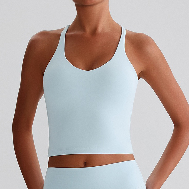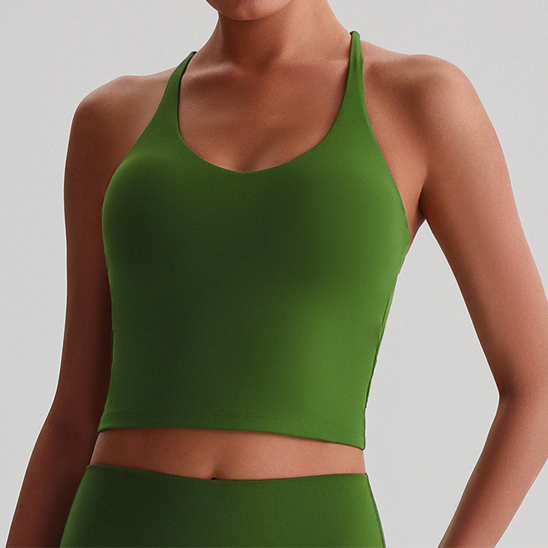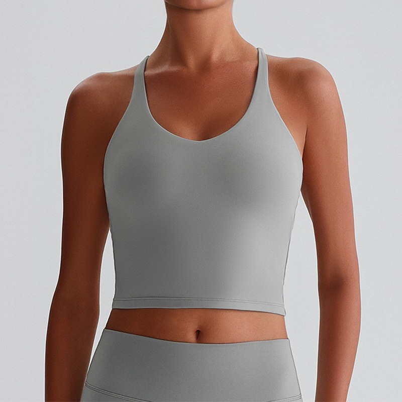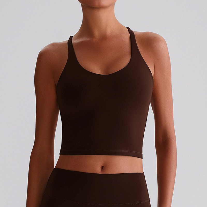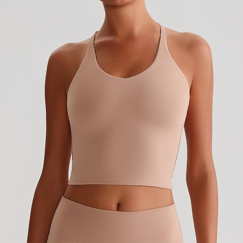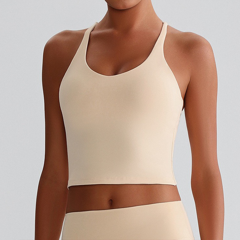 유럽과 미국의 국경을 넘나드는 섹시한 크로스백 요가 브라, 누드 느낌의 민소매 통기성 스포츠 브라 (여성용, 가슴 패드 포함)스토어 가기