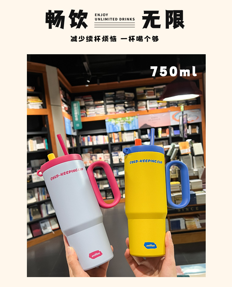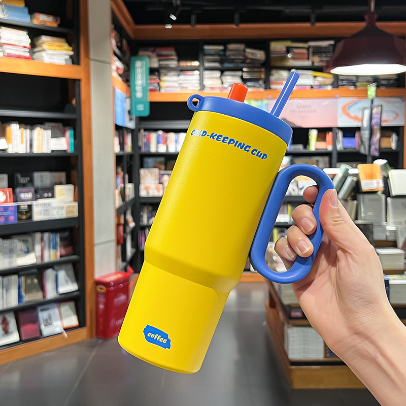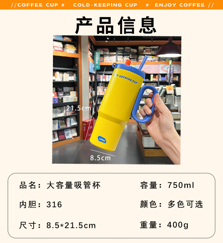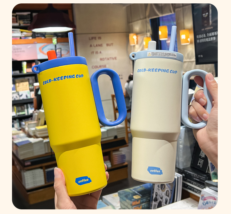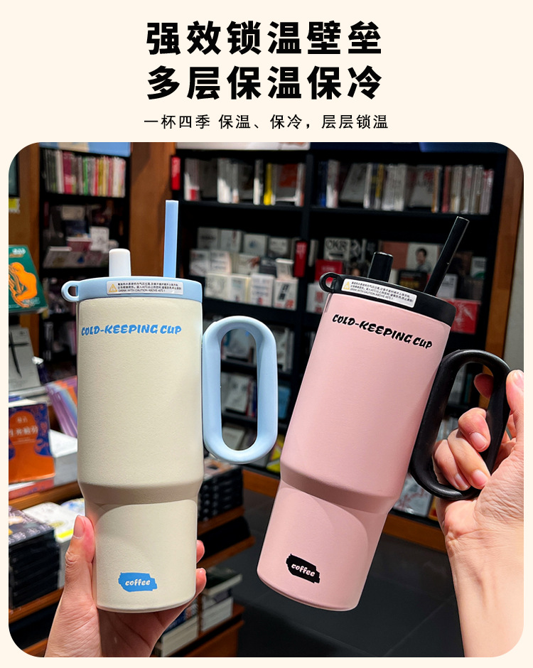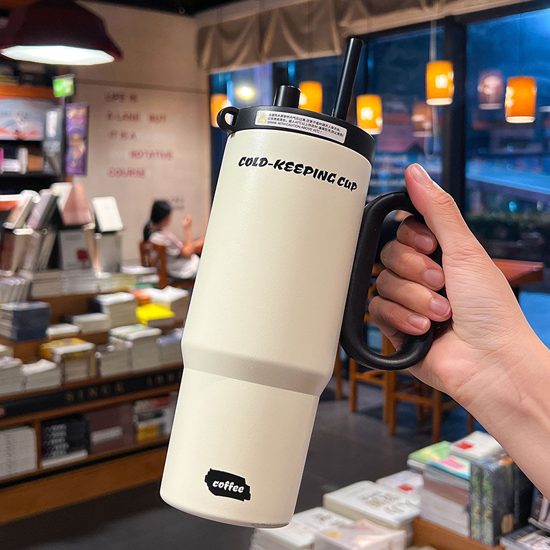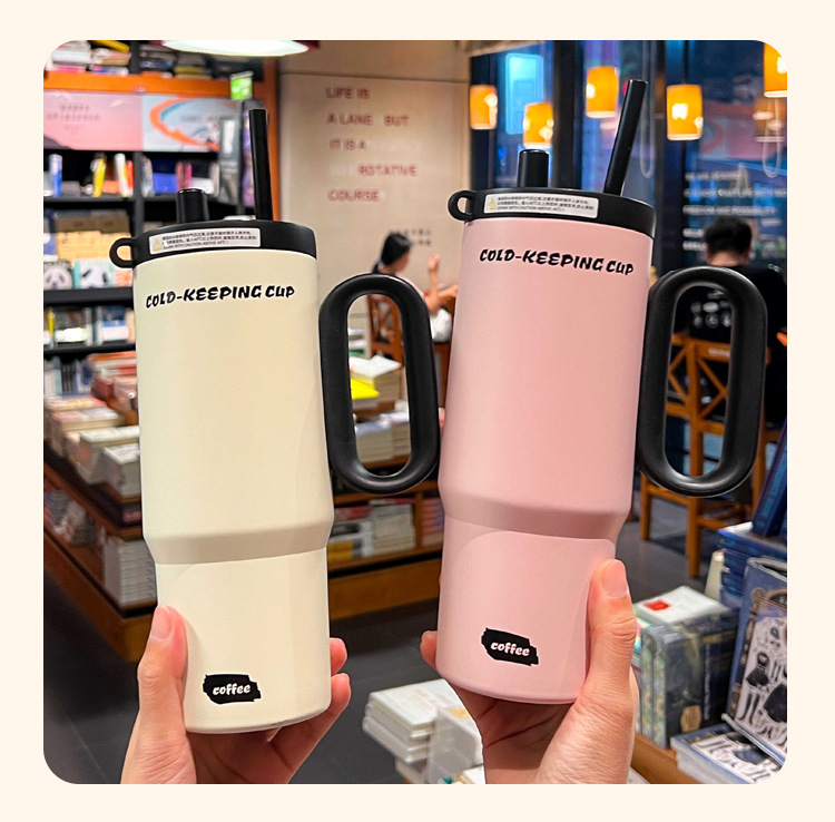 새로운 핸들 자동차 컵 대용량 316 스테인레스 스틸 진공 절연 컵 차 물 분리 더블 마시는 밀짚 컵스토어 가기