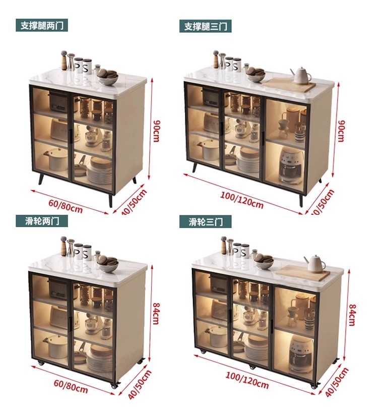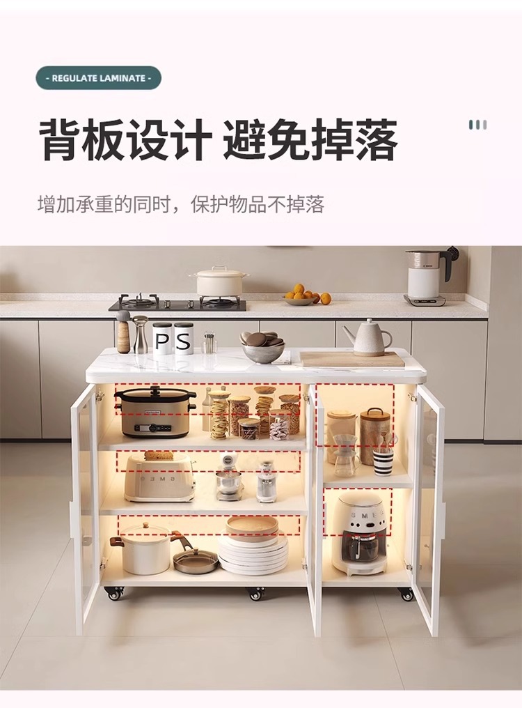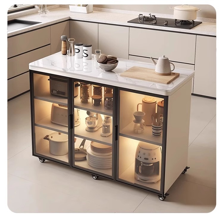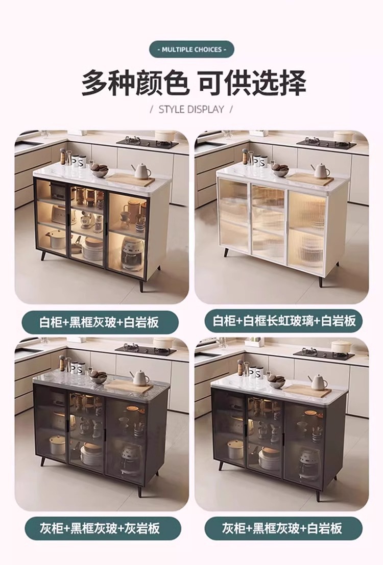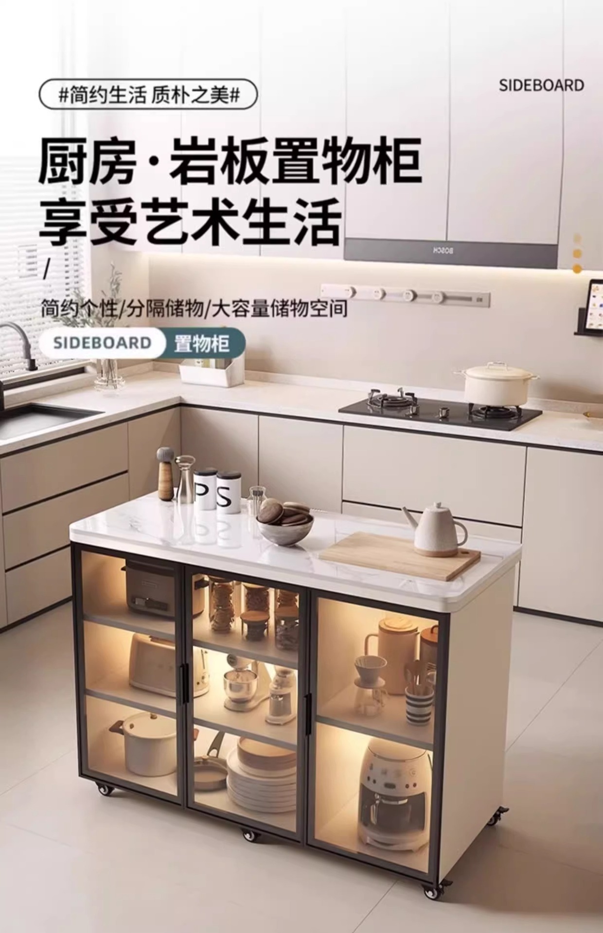 록 보드 주방 보관 캐비닛 가정용 다층 사이드 보드 거실 이동식 저장 아일랜드 테이블을 위한 다기능 저장 캐비닛