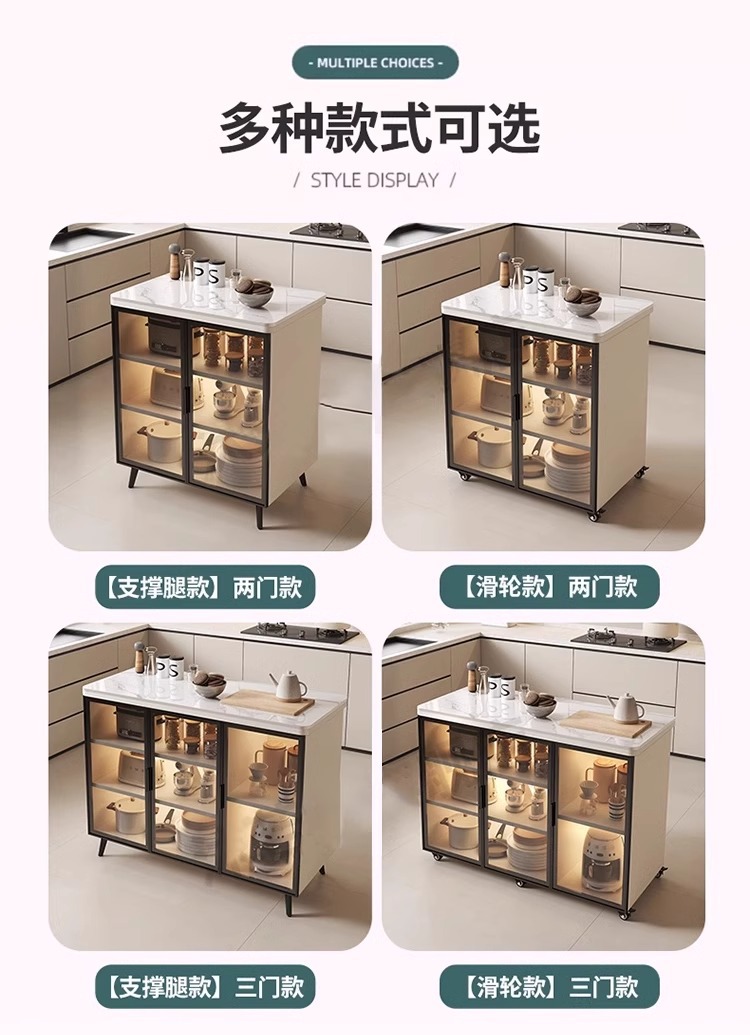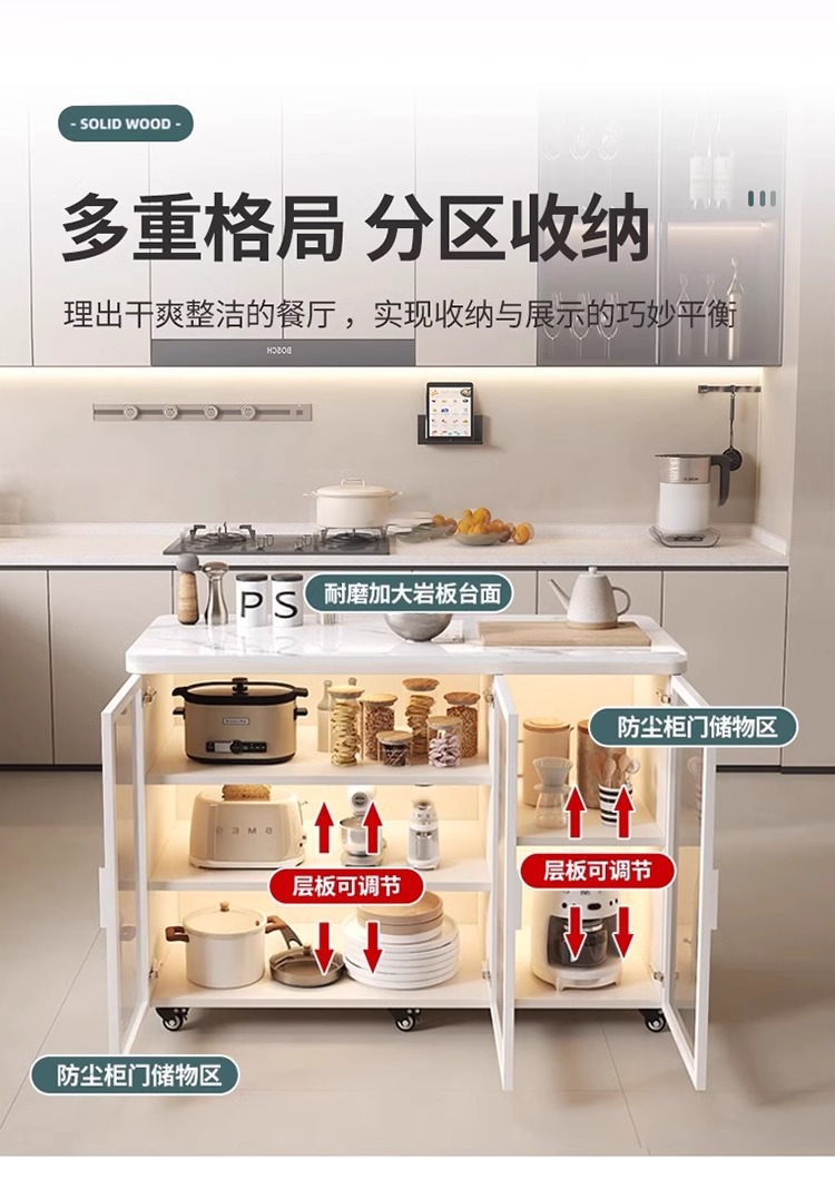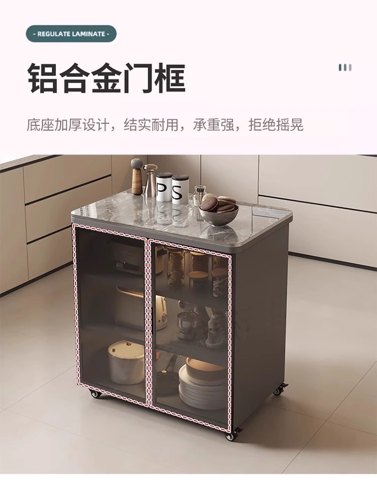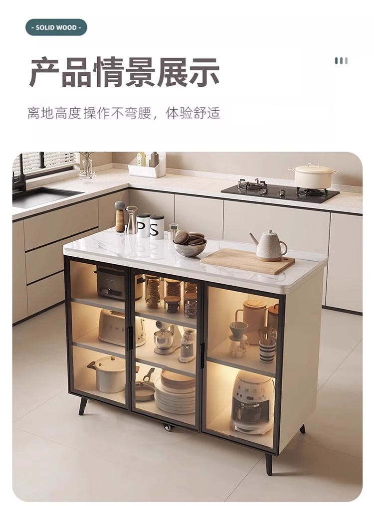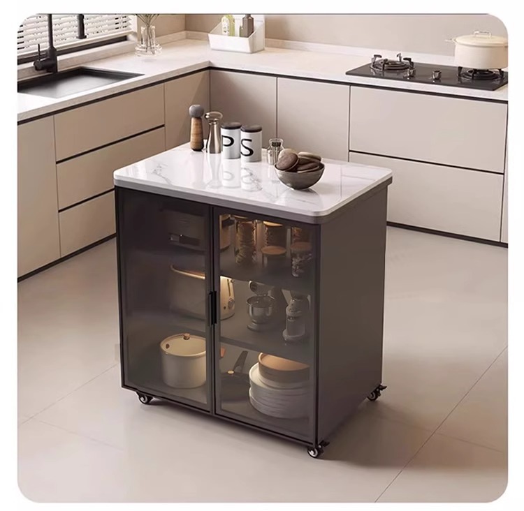 록 보드 주방 보관 캐비닛 가정용 다층 사이드 보드 거실 이동식 저장 아일랜드 테이블을 위한 다기능 저장 캐비닛