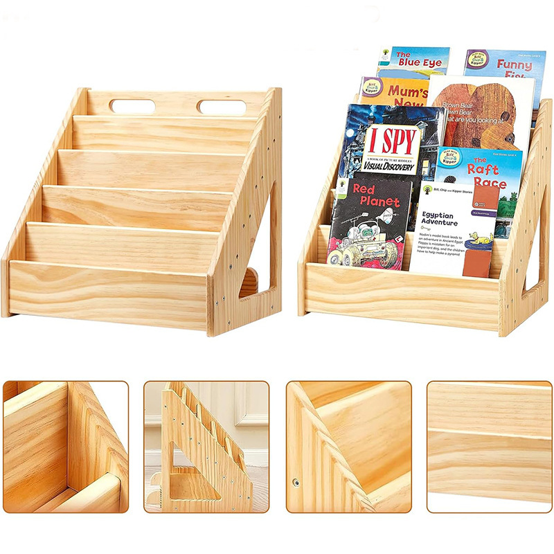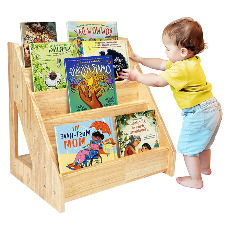 스팟 나무 어린이 그림책 수납 선반 바닥에 놓은 다층 책 수납 선반 독서 공간 책 정리 선반스토어 가기
