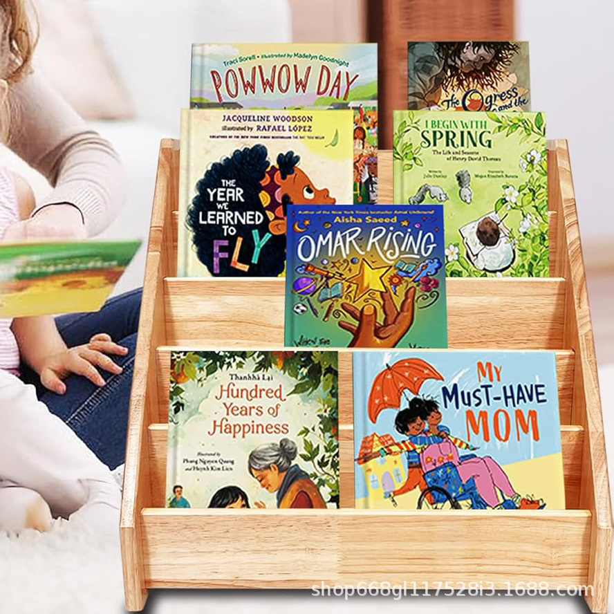 스팟 나무 어린이 그림책 수납 선반 바닥에 놓은 다층 책 수납 선반 독서 공간 책 정리 선반