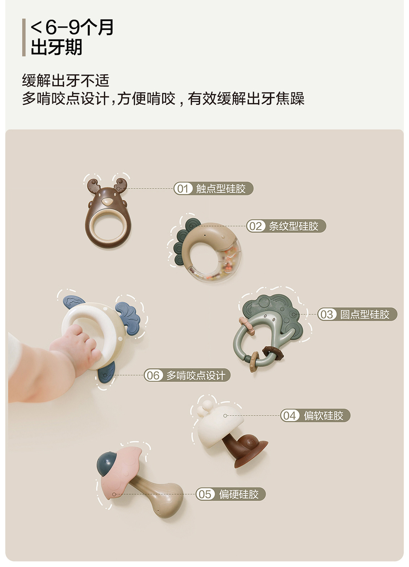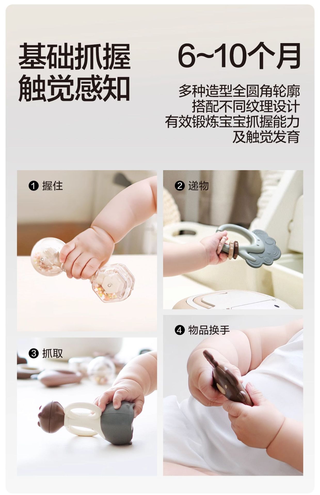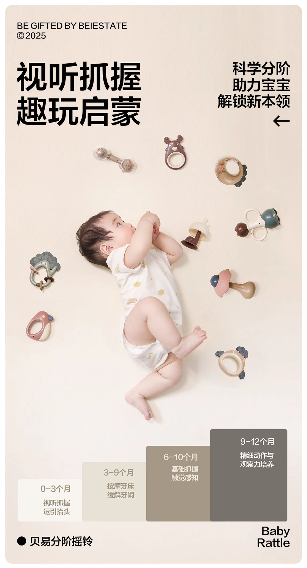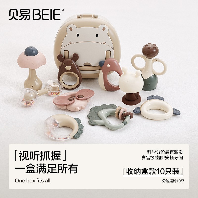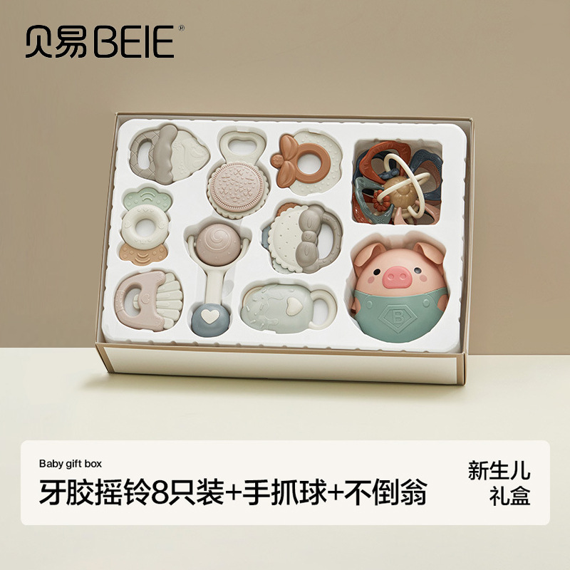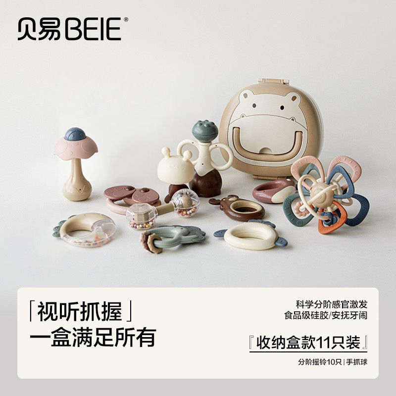 Beiyi 아기 손 딸랑이 장난감 신생아 0-6 개월 교육 조기 교육 잡기 훈련 씹을 수있는 치발기