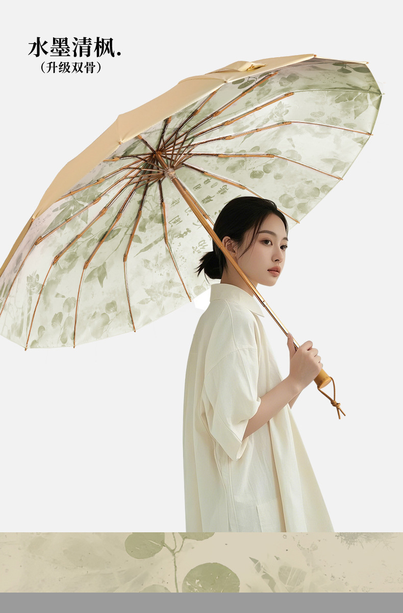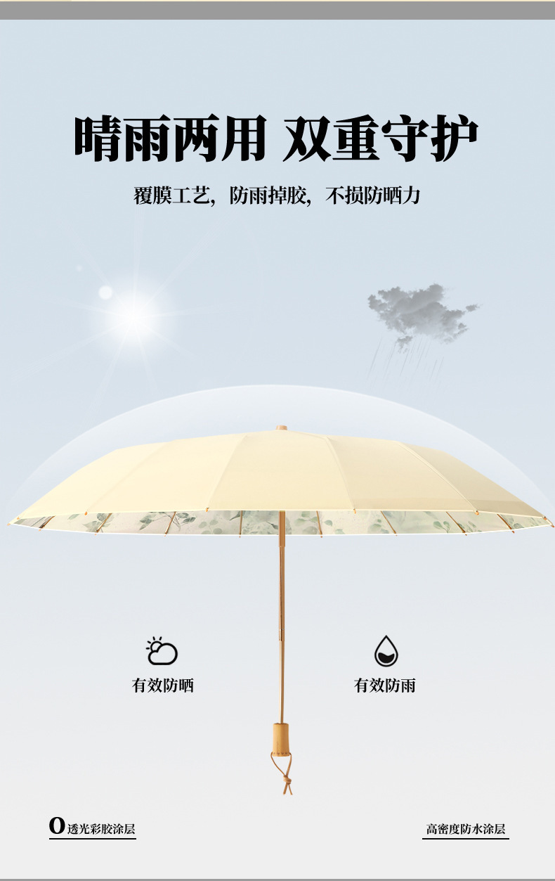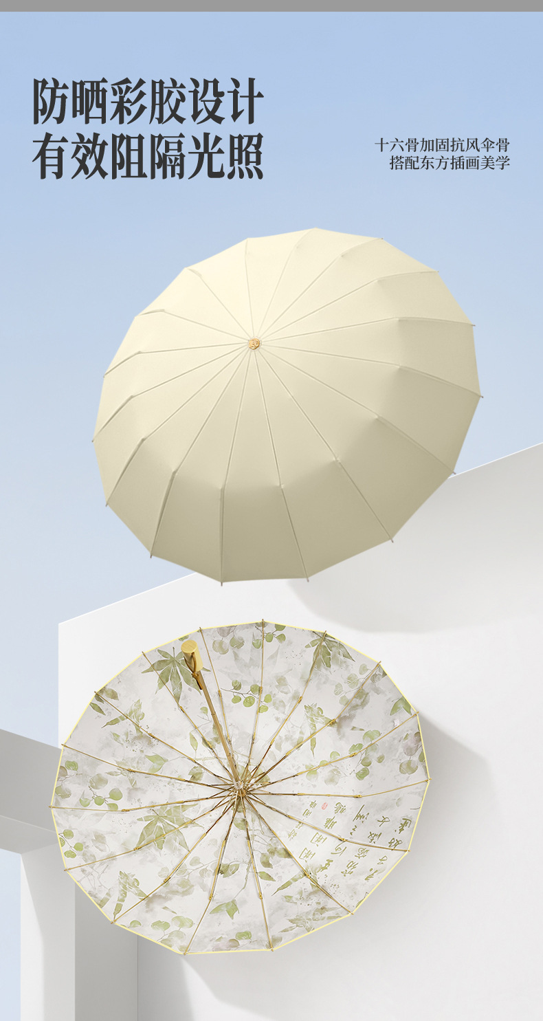 고풍 16본 수동 우산, 햇빛과 비를 겸용하는 여성용 자외선 차단 야외용 컬러 코팅 양산