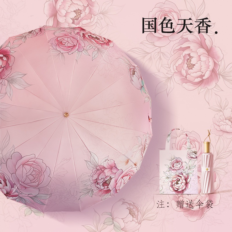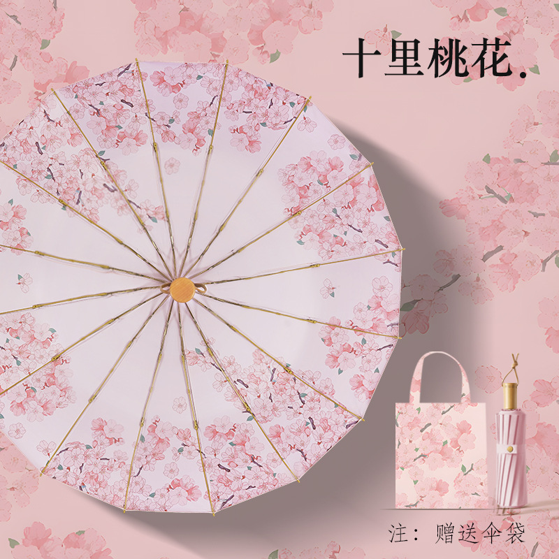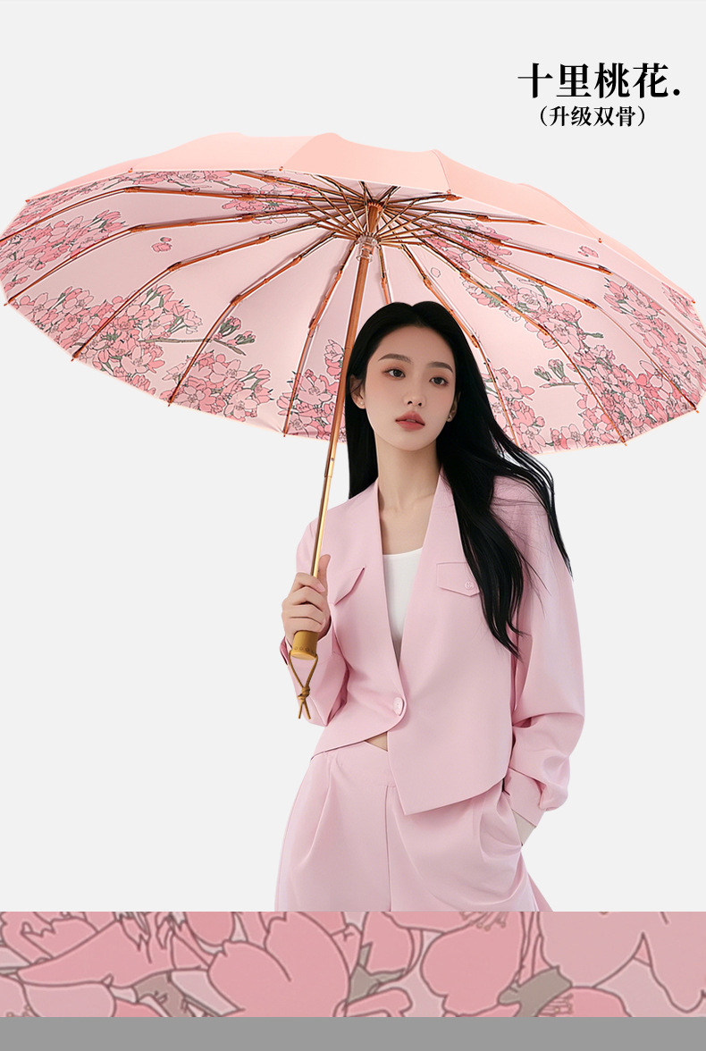 • 고대 스타일 16본 - 십리 복숭아꽃 [컬러 글루 슈퍼 자외선 차단/16본 강화 방풍]