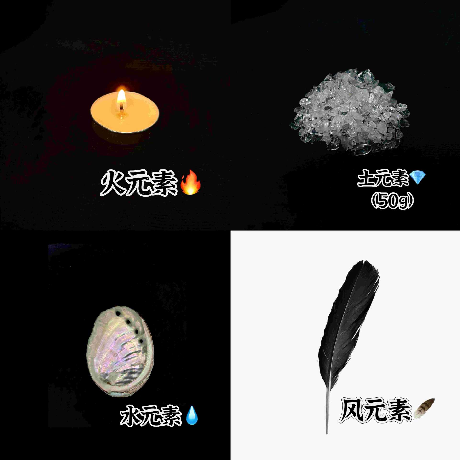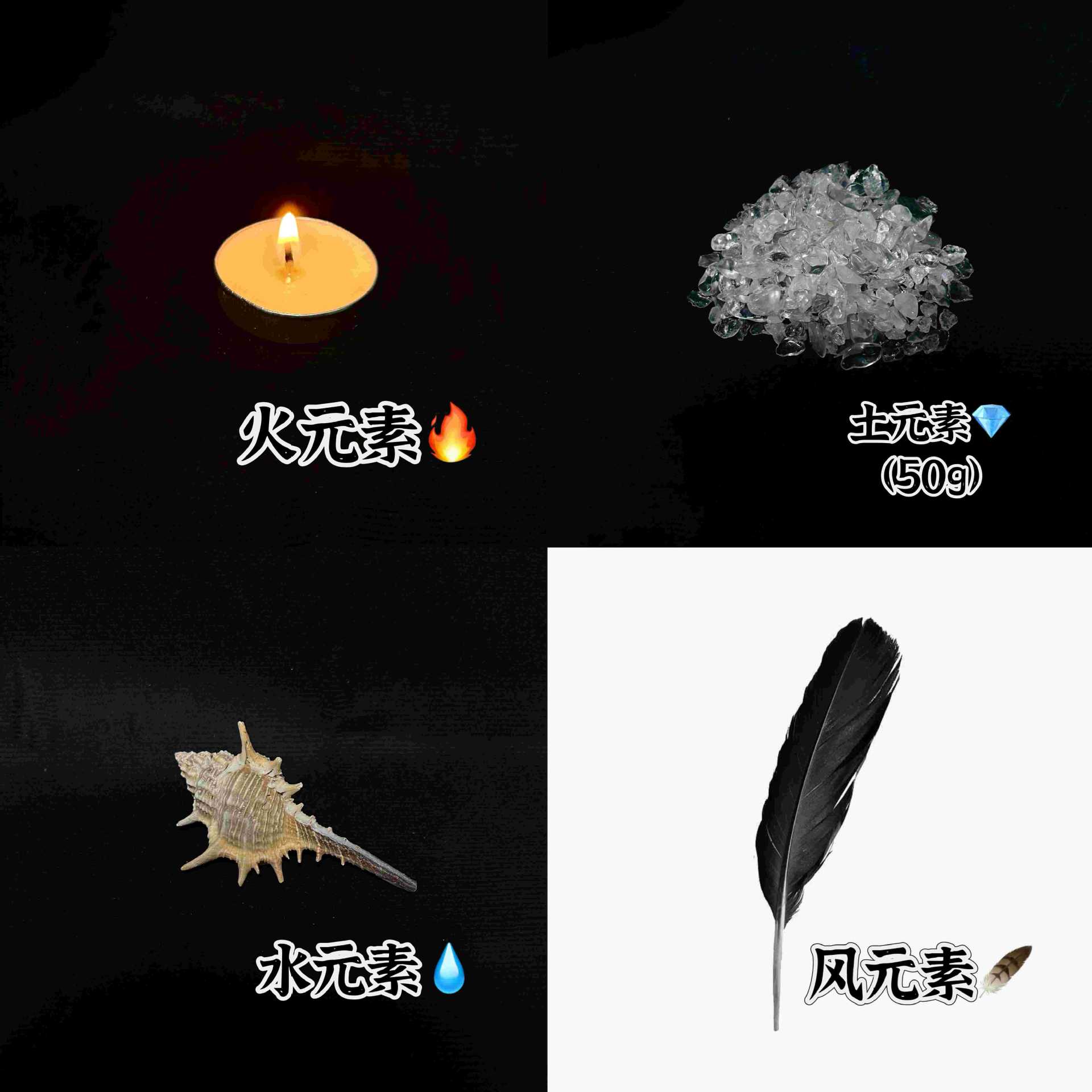 카드 오픈 4요소 검은 깃털 바람, 불, 물, 흙 장식품 세트 카드 오픈 탁상 소품 크리스탈 달팽이 양초 장식품스토어 가기