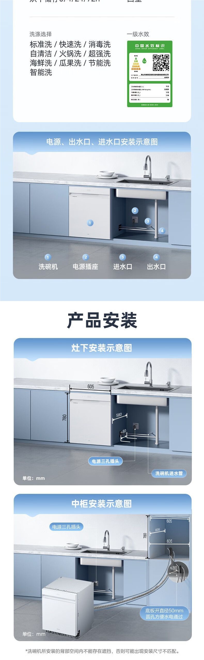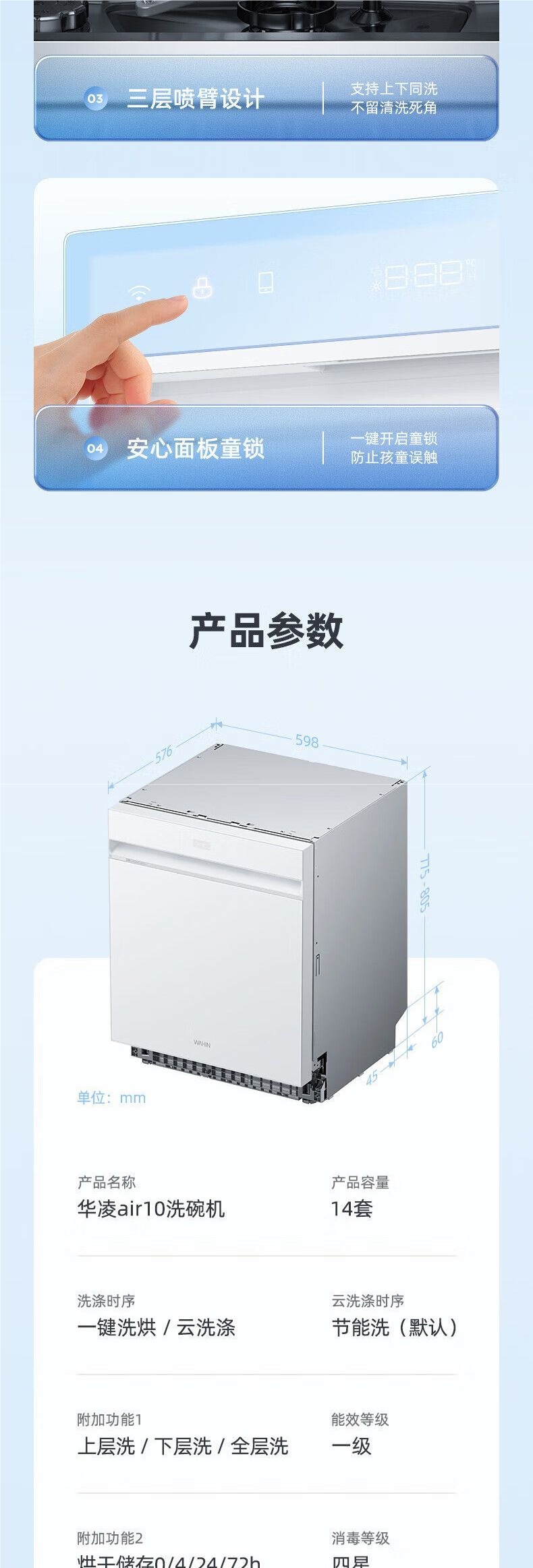 Hualing air10 식기 세척기 14세트 내장형 가정용 자동 4성 수효율