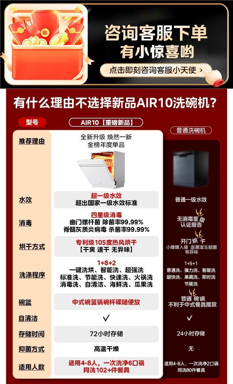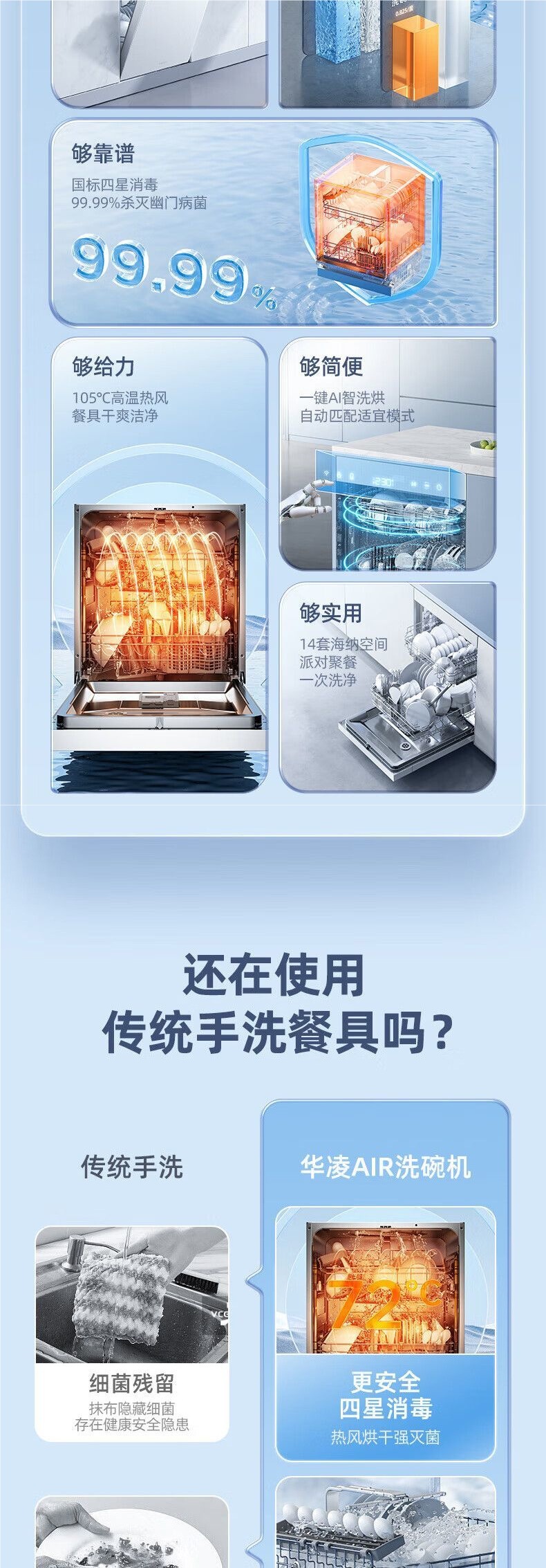 Hualing air10 식기 세척기 14세트 내장형 가정용 자동 4성 수효율스토어 가기