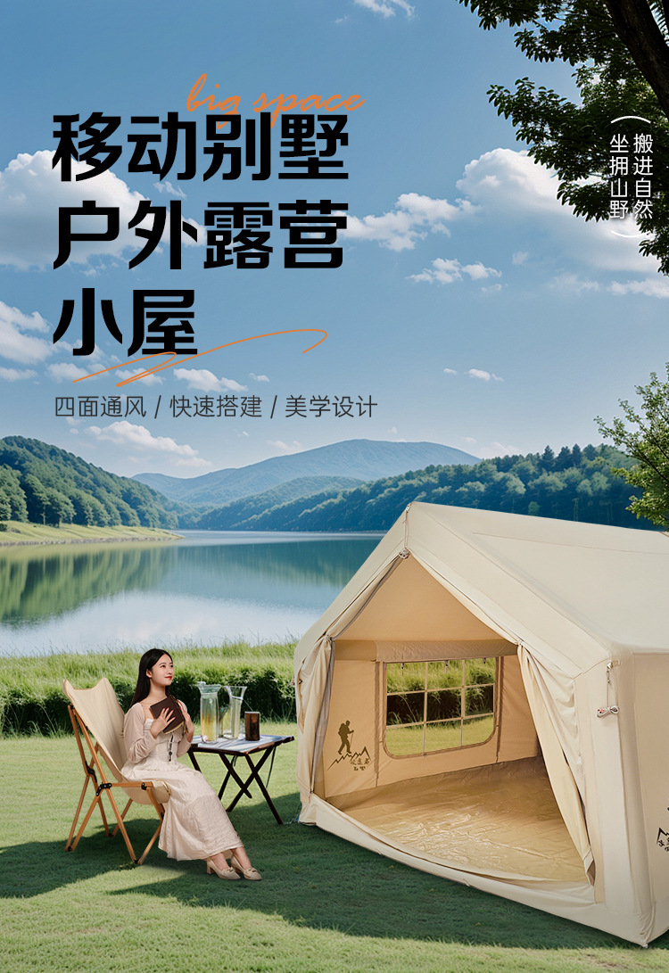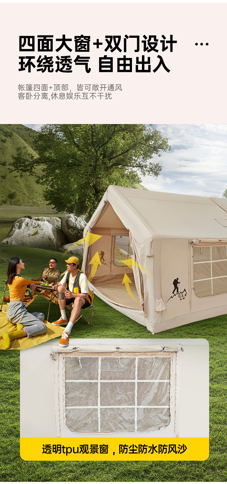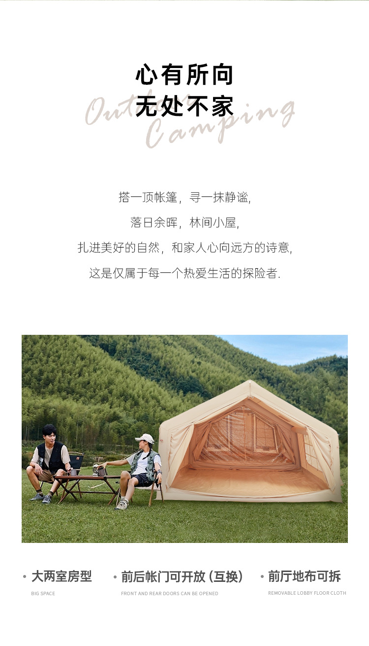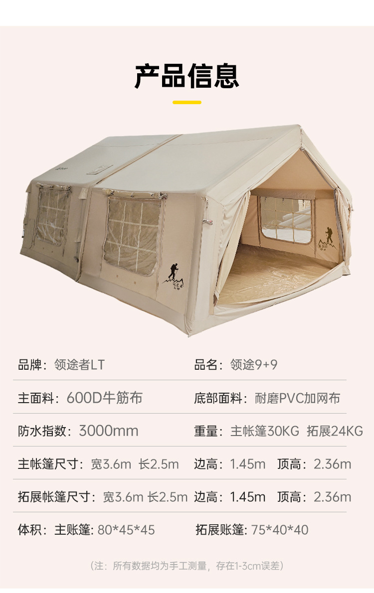 Lonter 9+9 평방 미터 풍선 텐트, 1개의 침실과 1개의 거실, 넓은 공간, 야외 캠핑, 600D 옥스포드 천, 비바람에 견디는