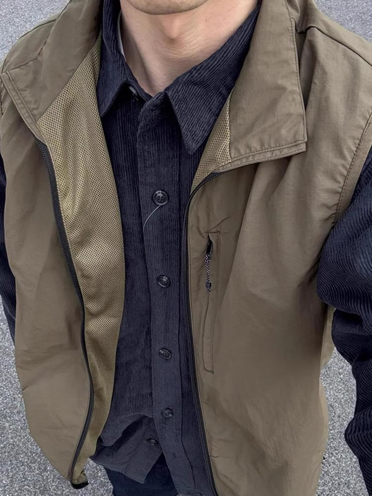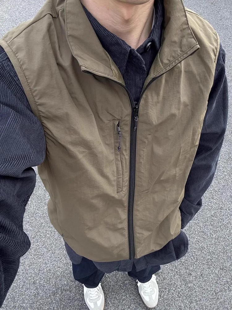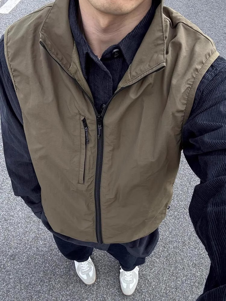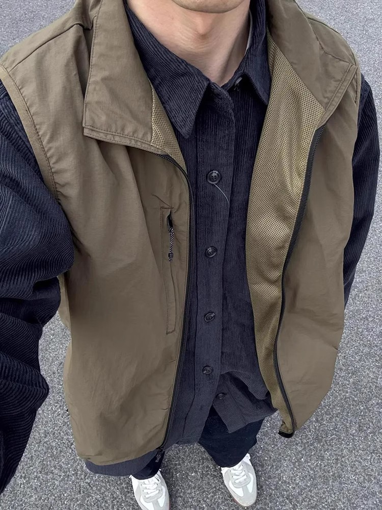 올리브 셔츠 레이어드 조끼 재킷 트렌디 브랜드 하이엔드 조끼 남성 봄 여름 클린핏 릴렉스 재킷