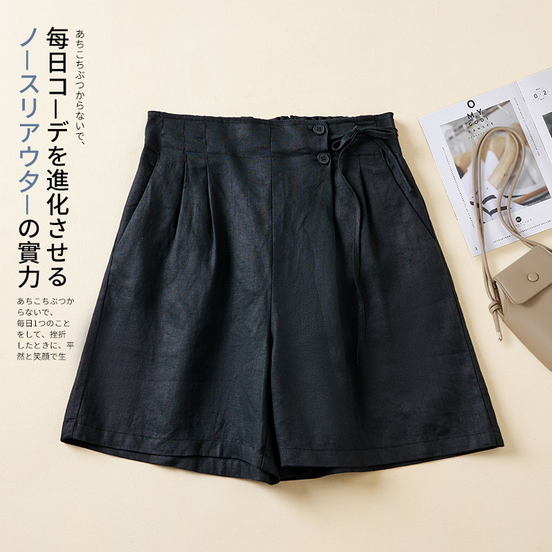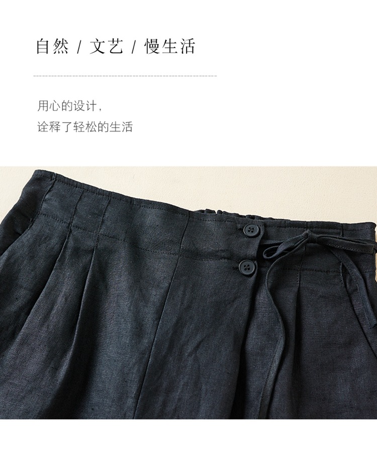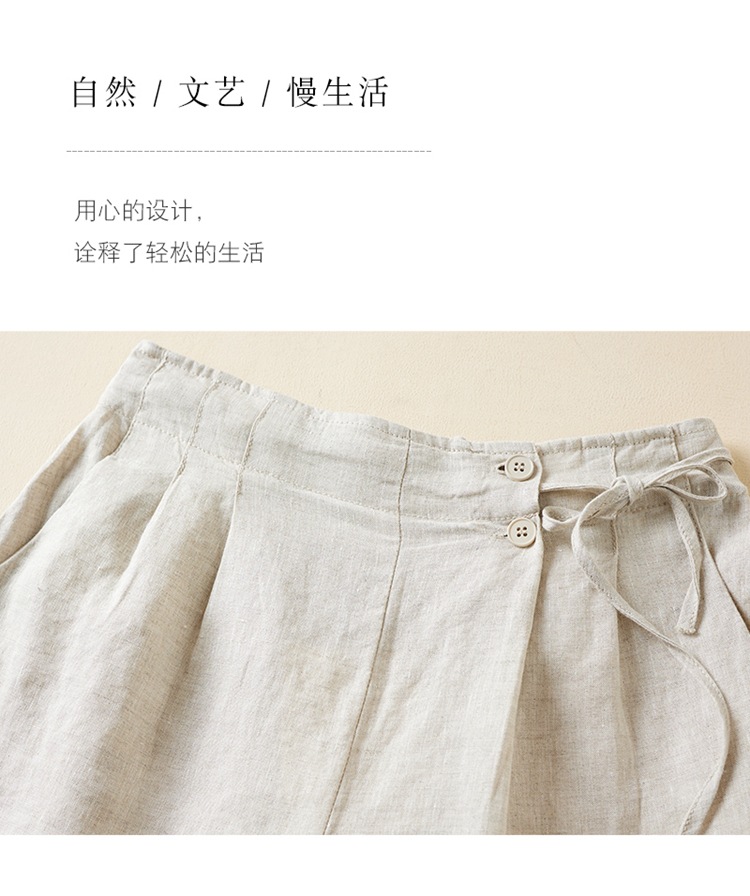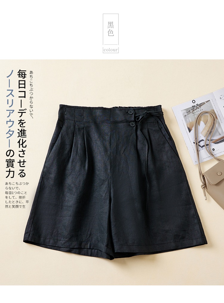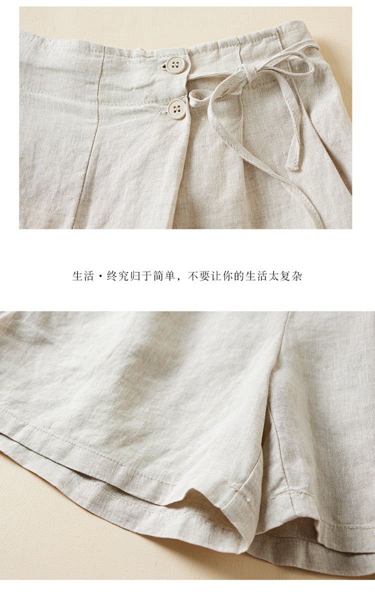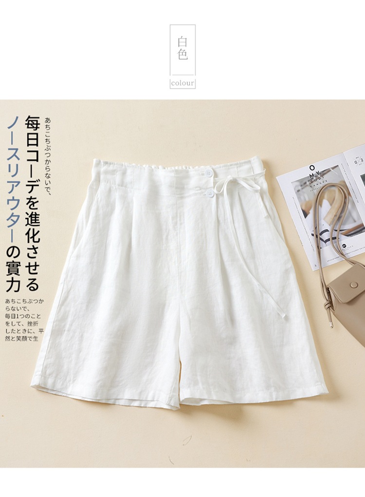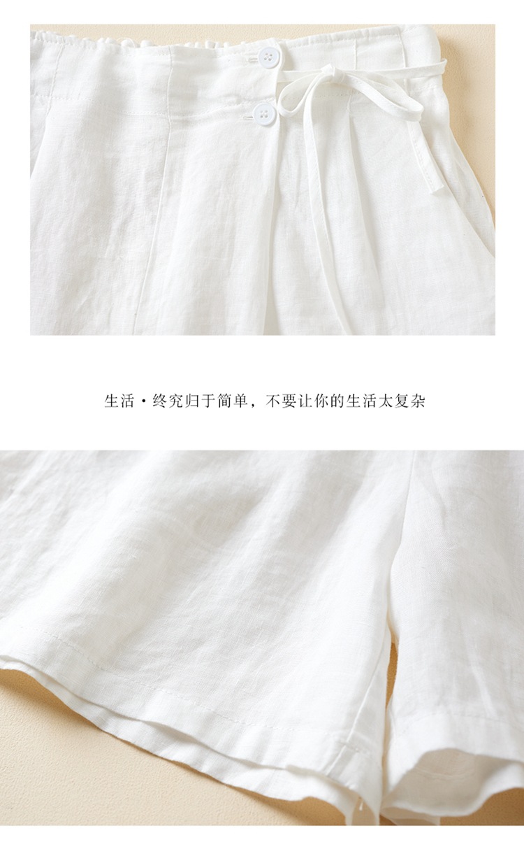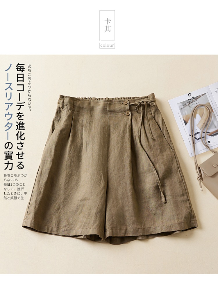 실제 사진 코튼 린넨 와이드 레그 반바지 여름 여성 복고풍 루즈 슬리밍 캐주얼 대형 여성 바지 코튼 린넨 5부 바지 얇은스토어 가기