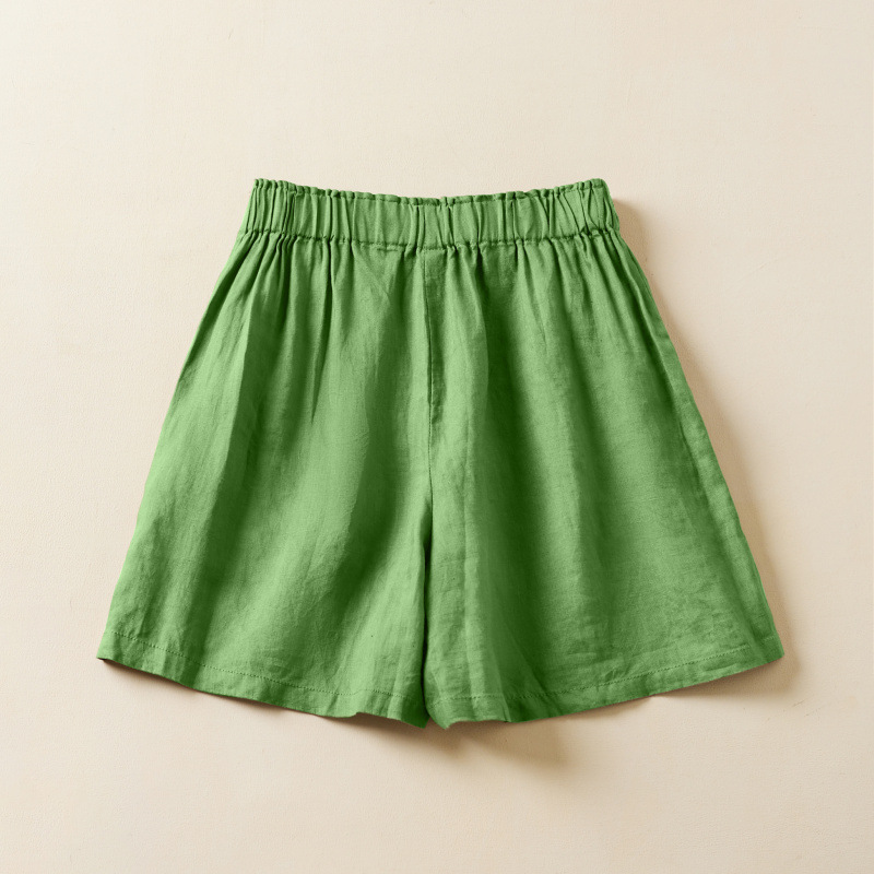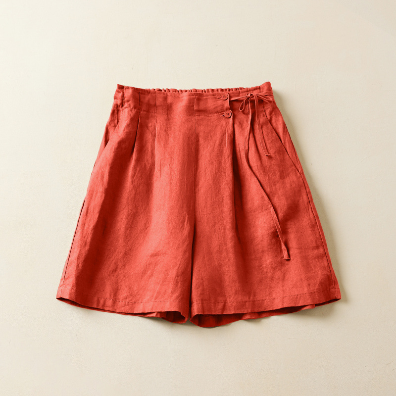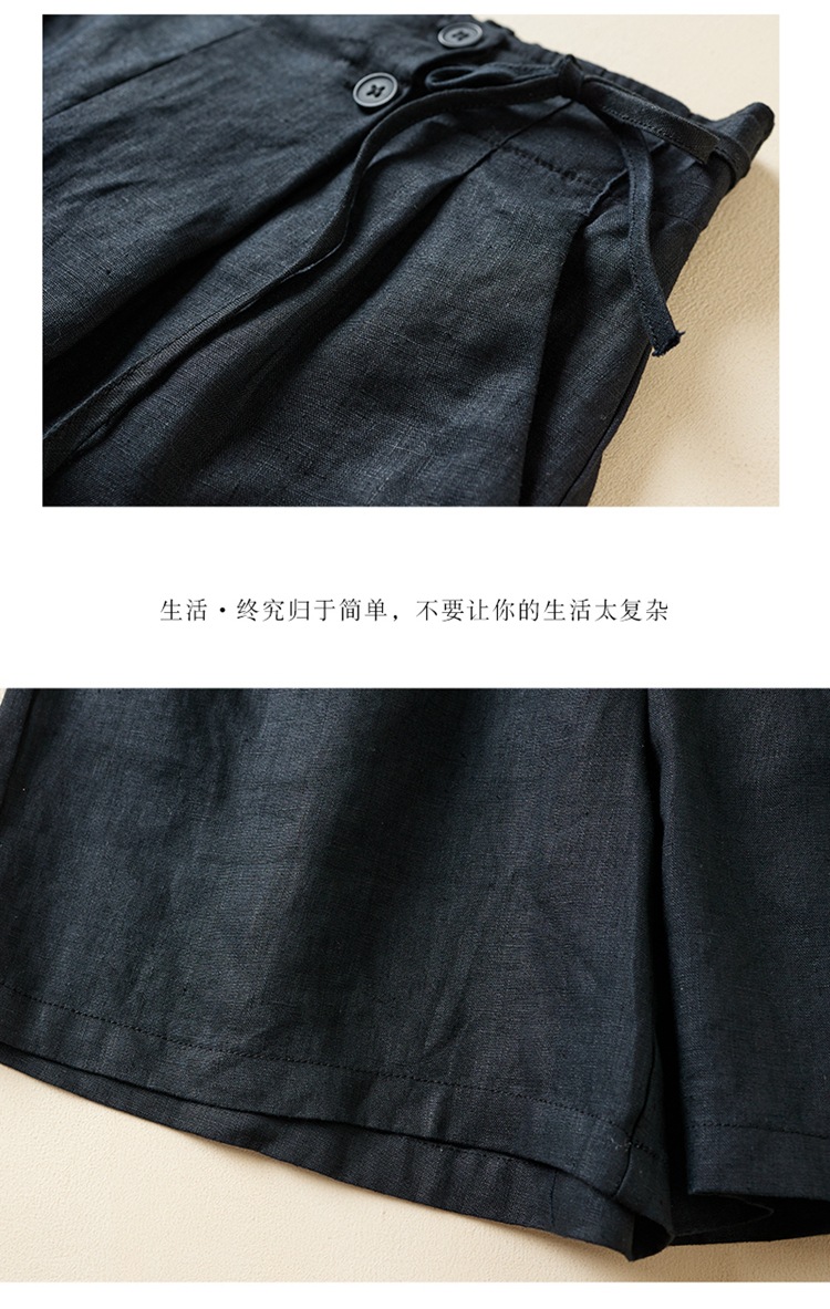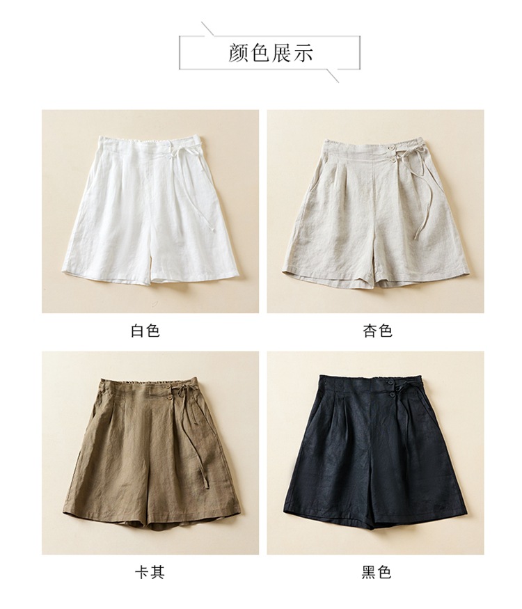 실제 사진 코튼 린넨 와이드 레그 반바지 여름 여성 복고풍 루즈 슬리밍 캐주얼 대형 여성 바지 코튼 린넨 5부 바지 얇은